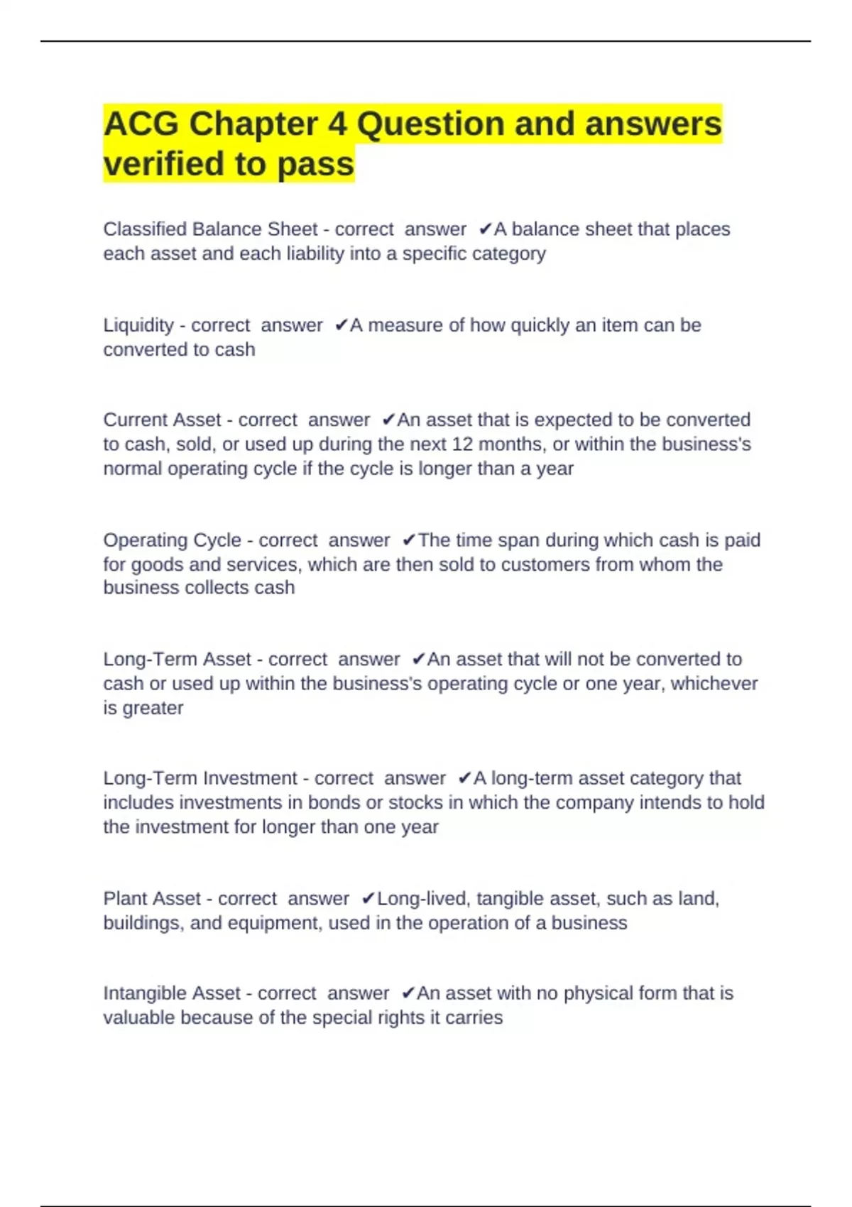 Long-Term Asset - correct answer ✔An asset that will not be converted to