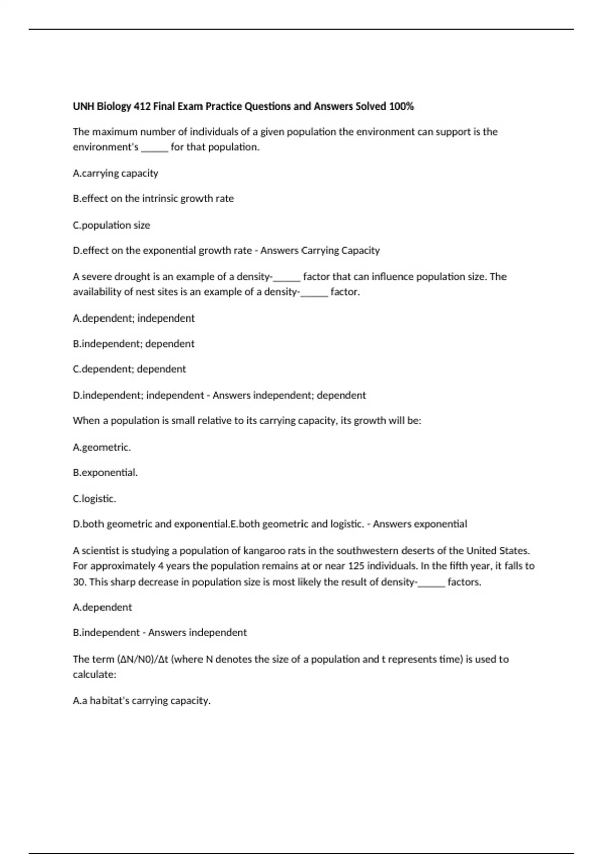 D.effect on the exponential growth rate - Answers Carrying Capacity