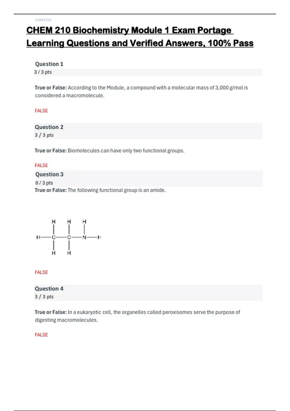 CHEM 210 Biochemistry Module 1 Exam Portage Learning Questions and Verified Answers, 100% Pass