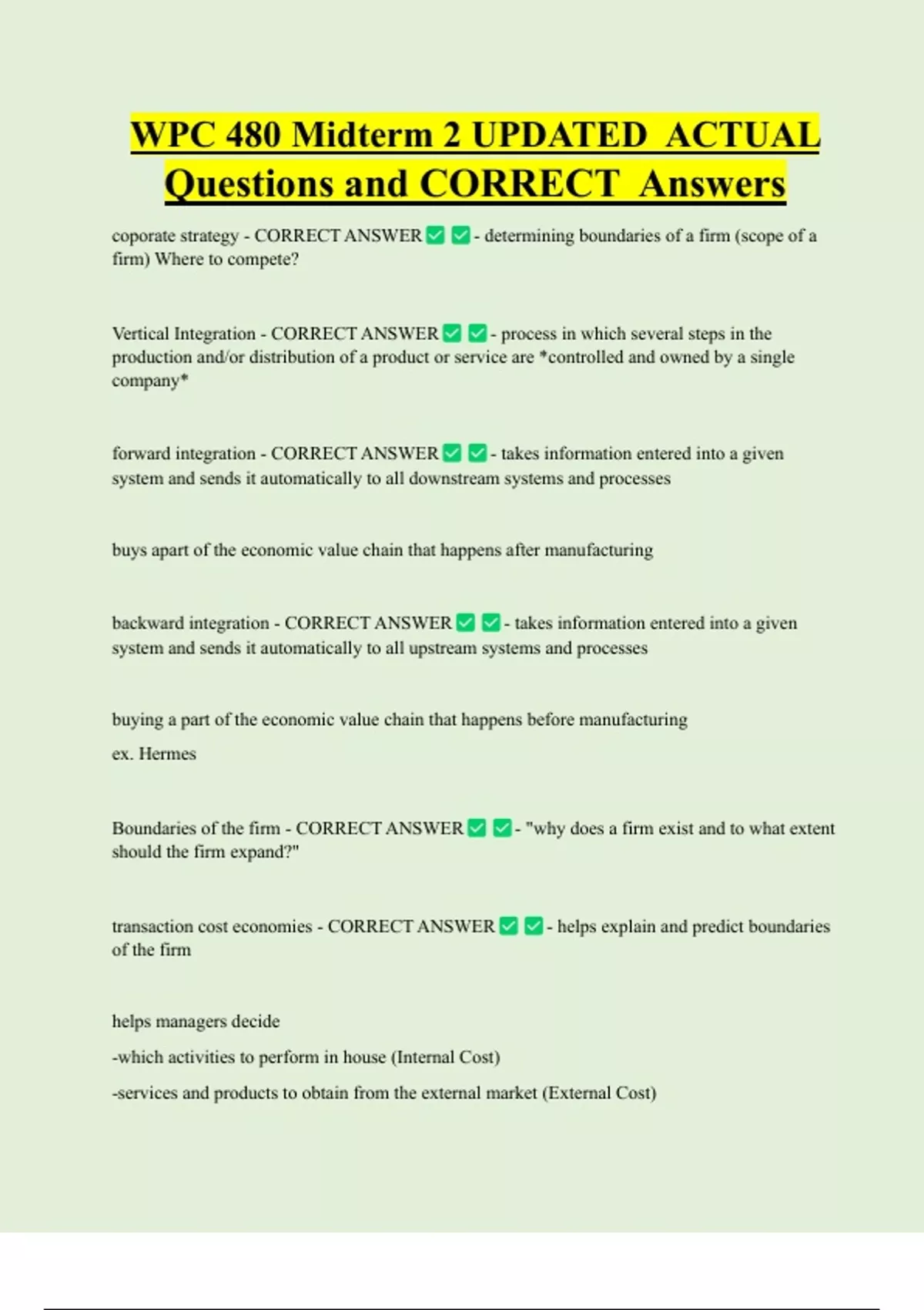 Questions and CORRECT Answers