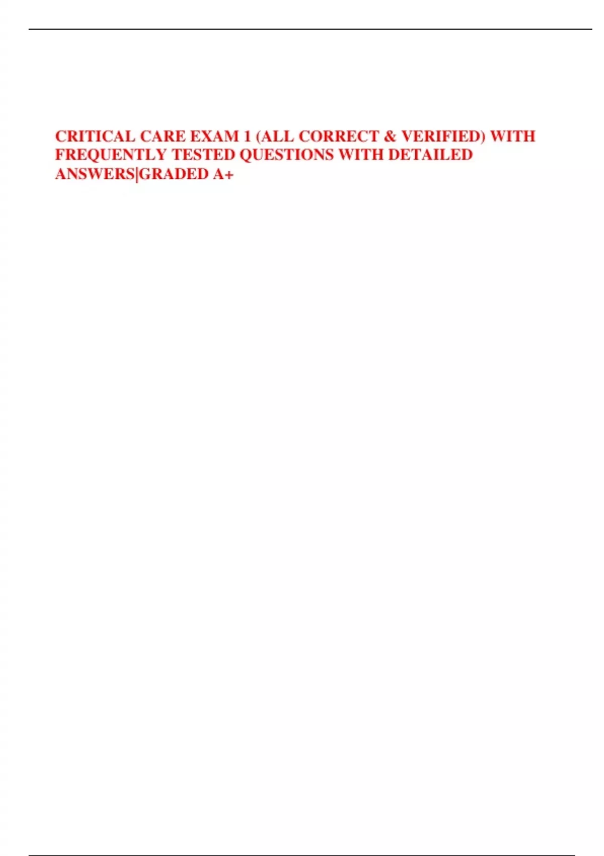 CRITICAL CARE EXAM 1 (ALL CORRECT & VERIFIED) WITH