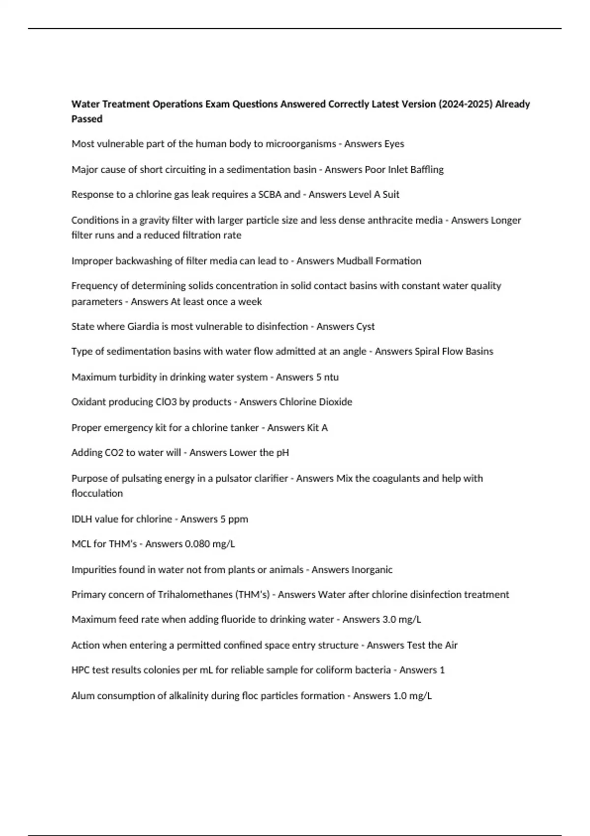 Maximum turbidity in drinking water system - Answers 5 ntu