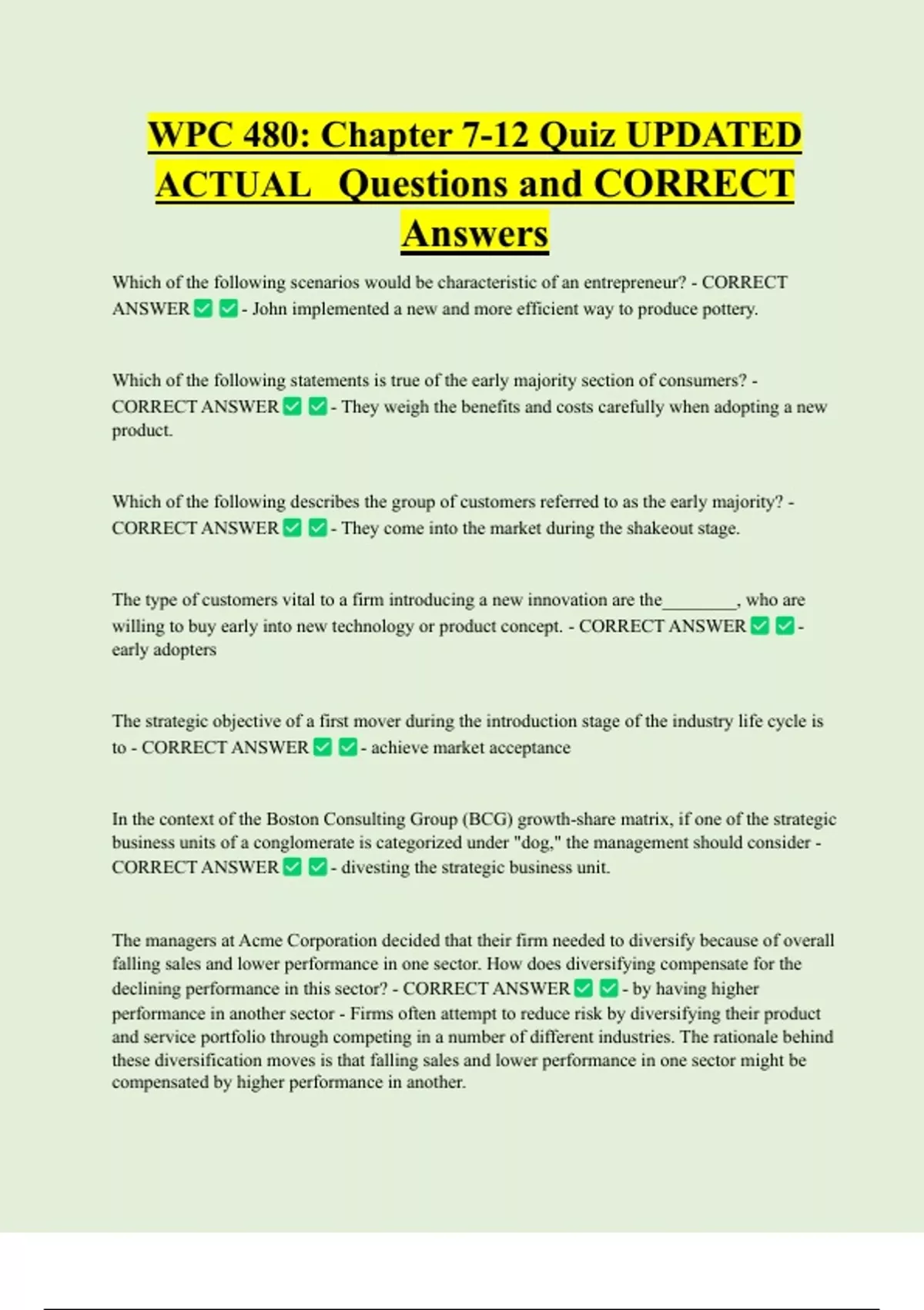 ACTUAL Questions and CORRECT