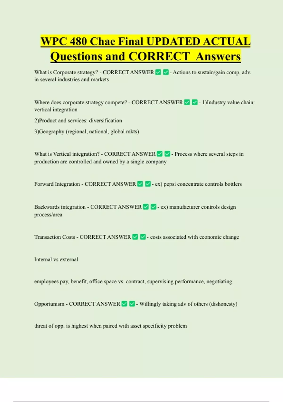 What is Corporate strategy? - CORRECT ANSWER - Actions to sustain/gain comp. adv.