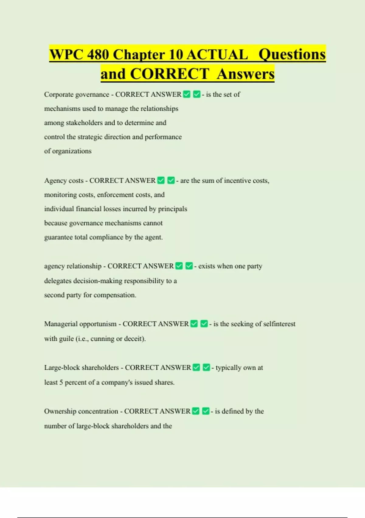 Corporate governance is: - CORRECT ANSWER - the set of mechanisms used to manage