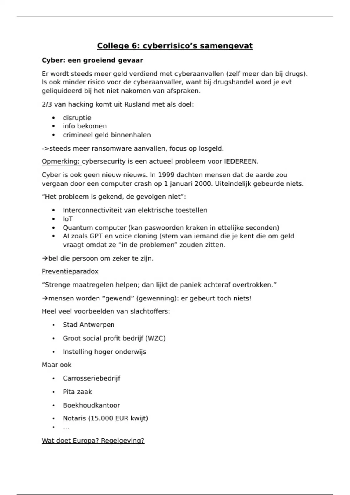 Korte samenvatting van de gastles van Gerrit Van Daele over cyberrisico's en verzekeringen.