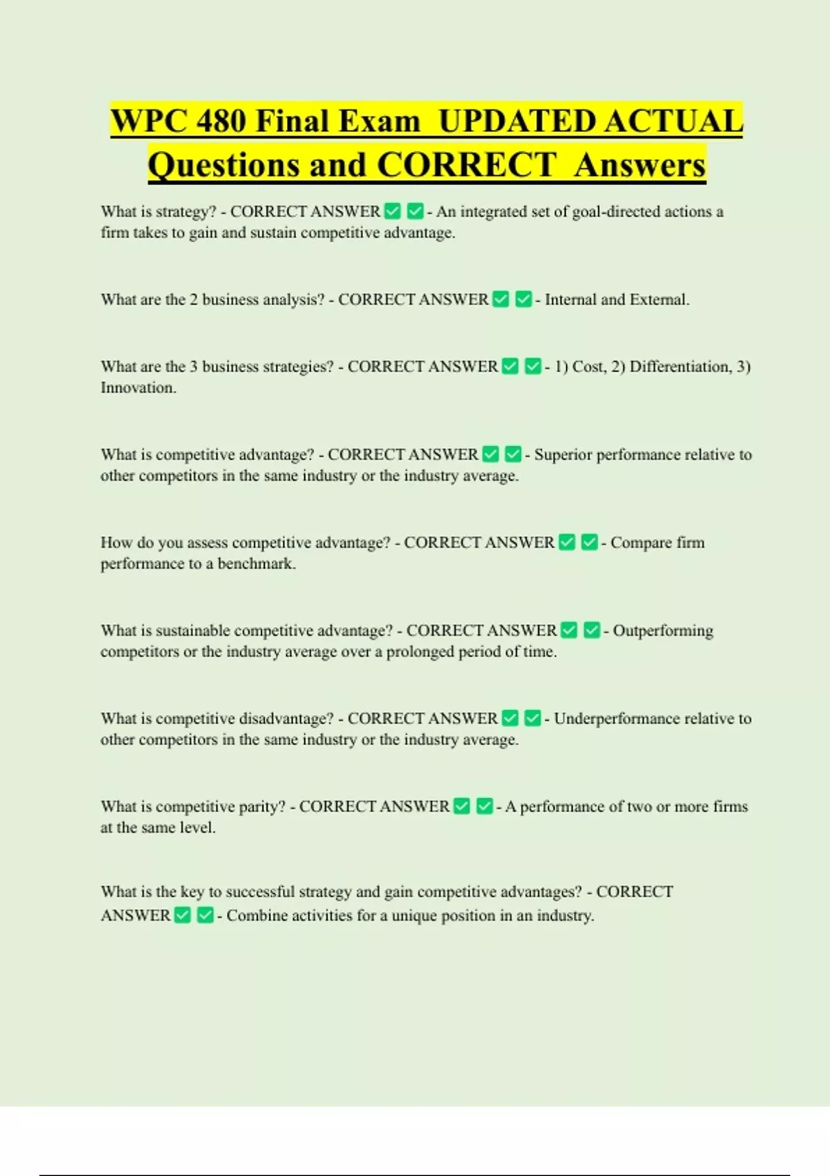 ,Where does competitive advantage come from? - CORRECT ANSWER - 1) Performing