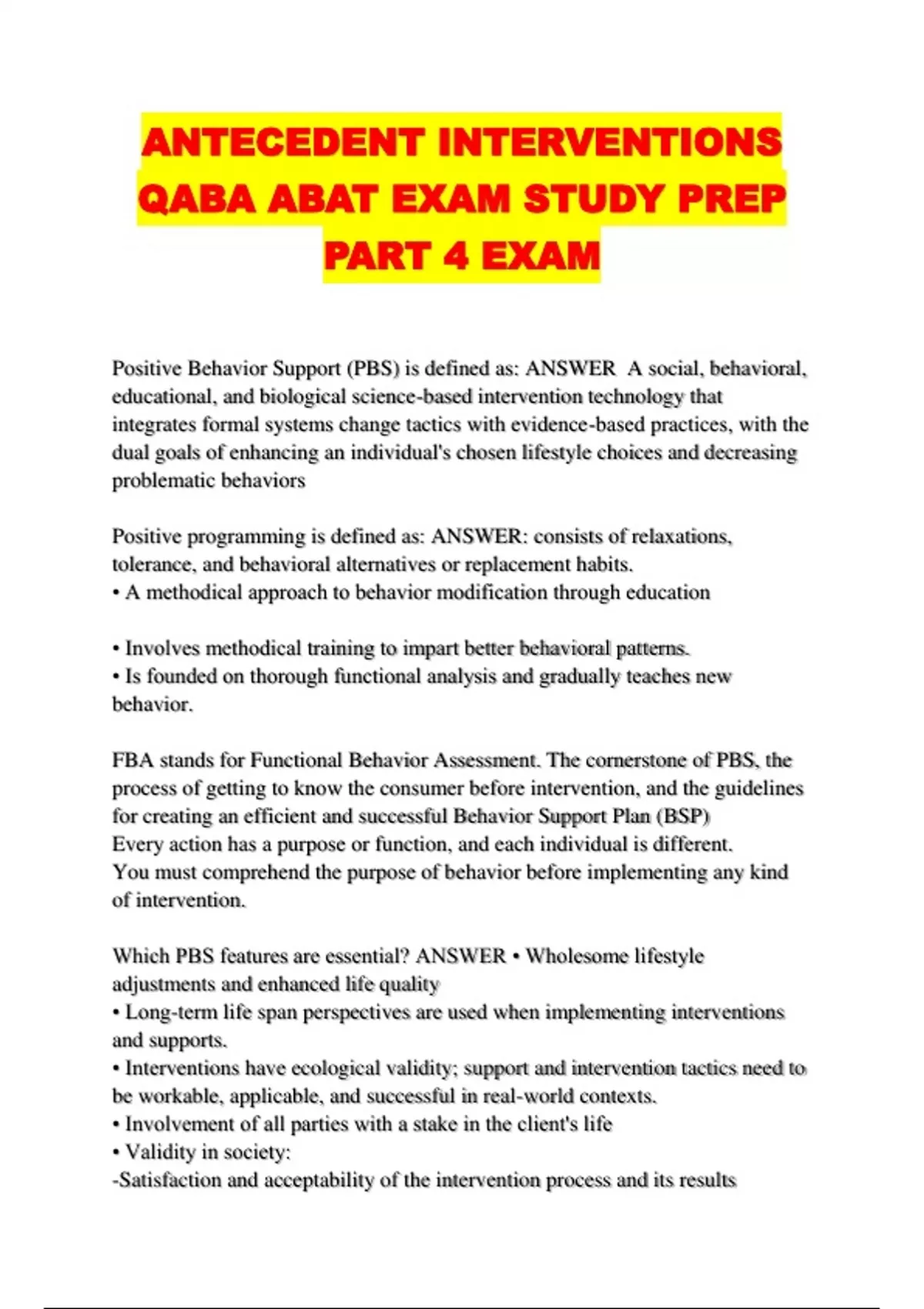 ANTECEDENT INTERVENTIONS QABA ABAT EXAM STUDY PREP PART 4 EXAM