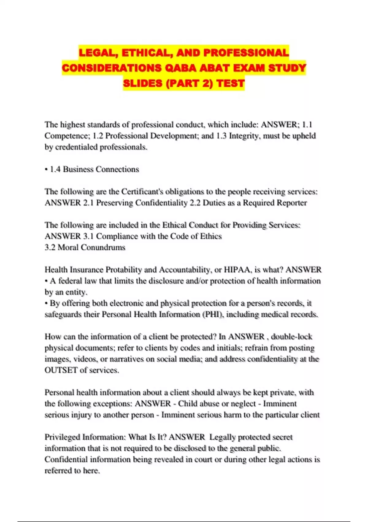 The highest standards of professional conduct, which include: ANSWER; 1.1