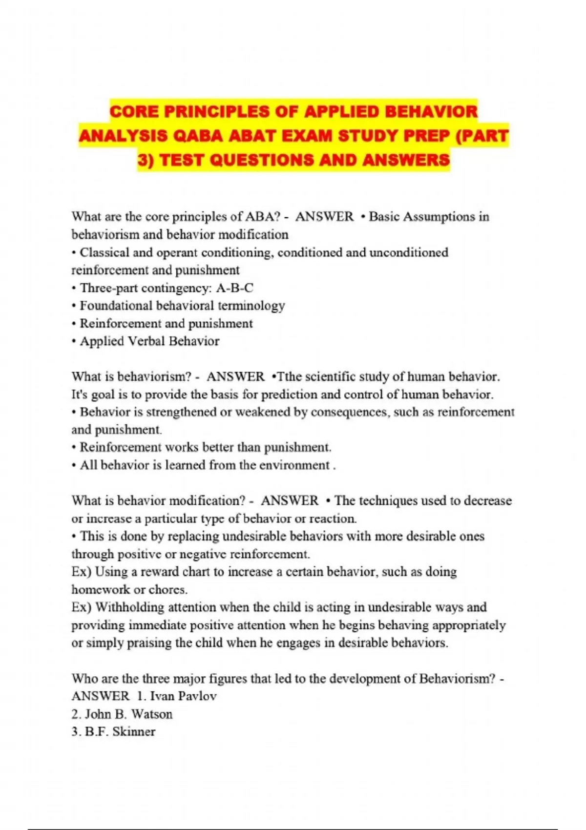 CORE PRINCIPLES OF APPLIED BEHAVIOR ANALYSIS QABA ABAT EXAM STUDY PREP...
