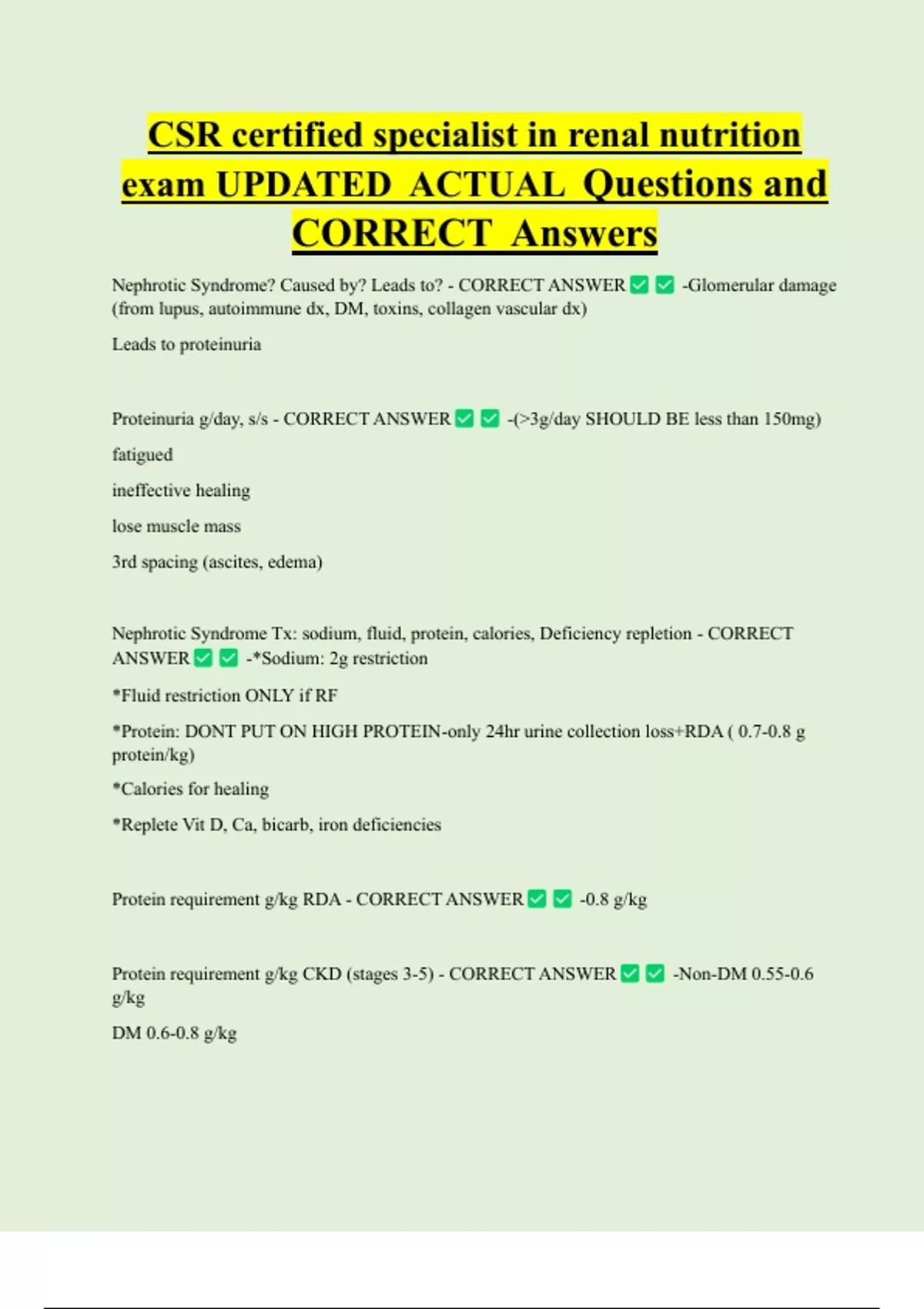 Nephrotic Syndrome Tx: sodium, fluid, protein, calories, Deficiency repletion - CORRECT
