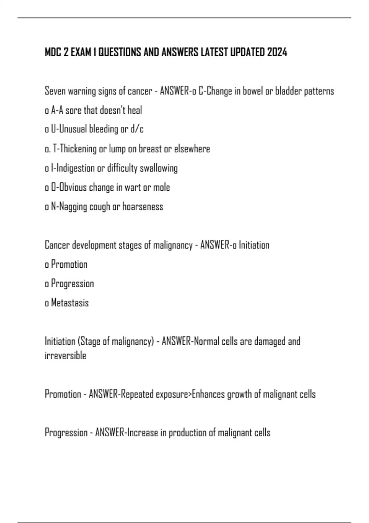 Cancer development stages of malignancy - ANSWER-o Initiation