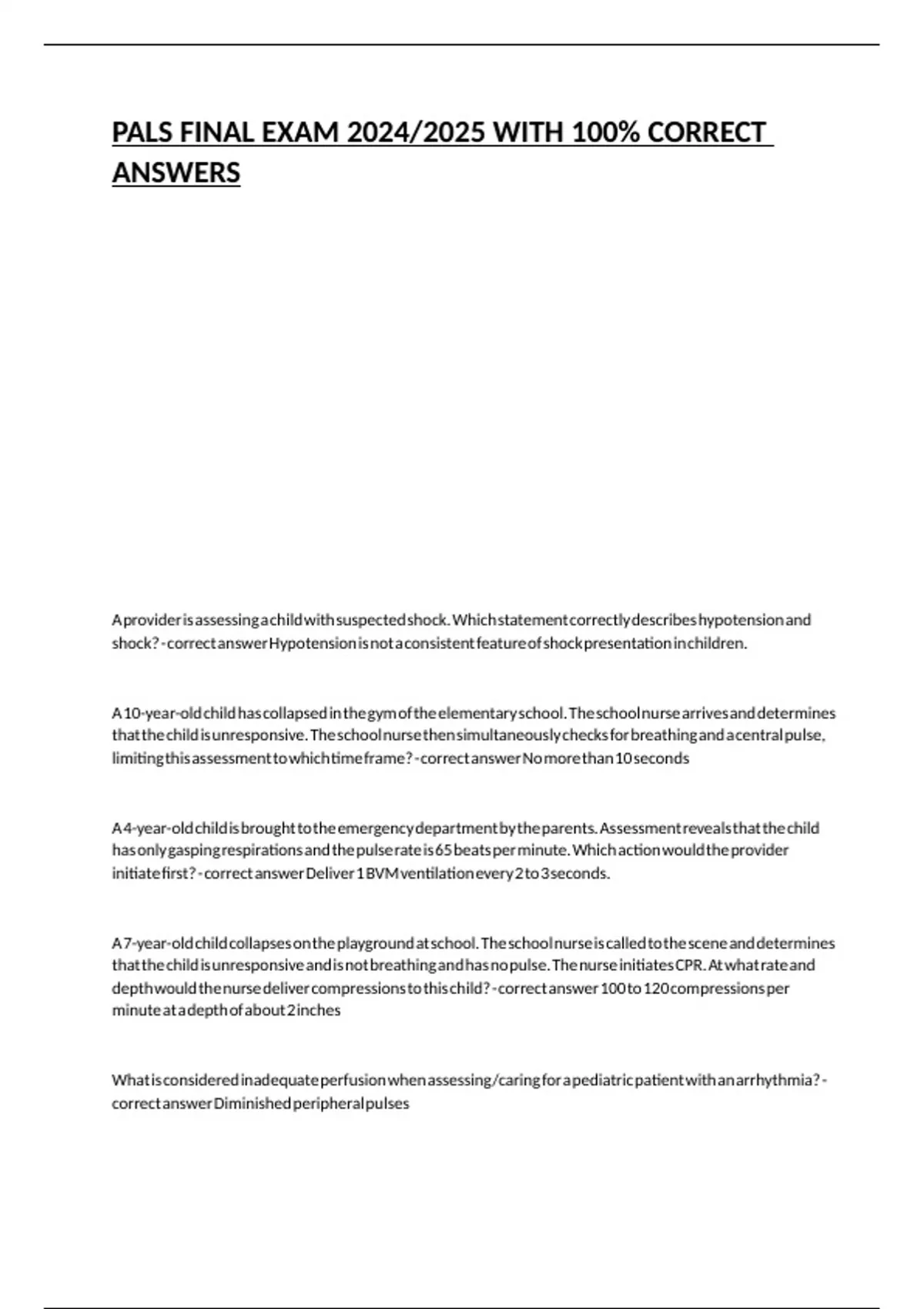 PALS FINAL EXAM 2024/2025 WITH 100% CORRECT