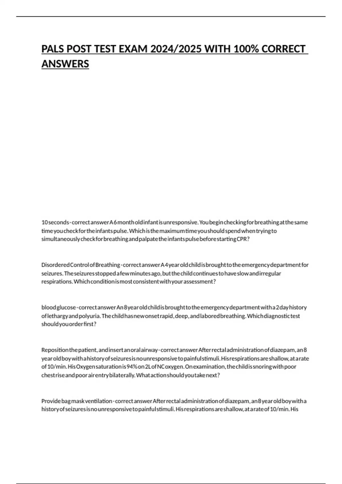 PALS POST TEST EXAM 2024/2025 WITH 100% CORRECT