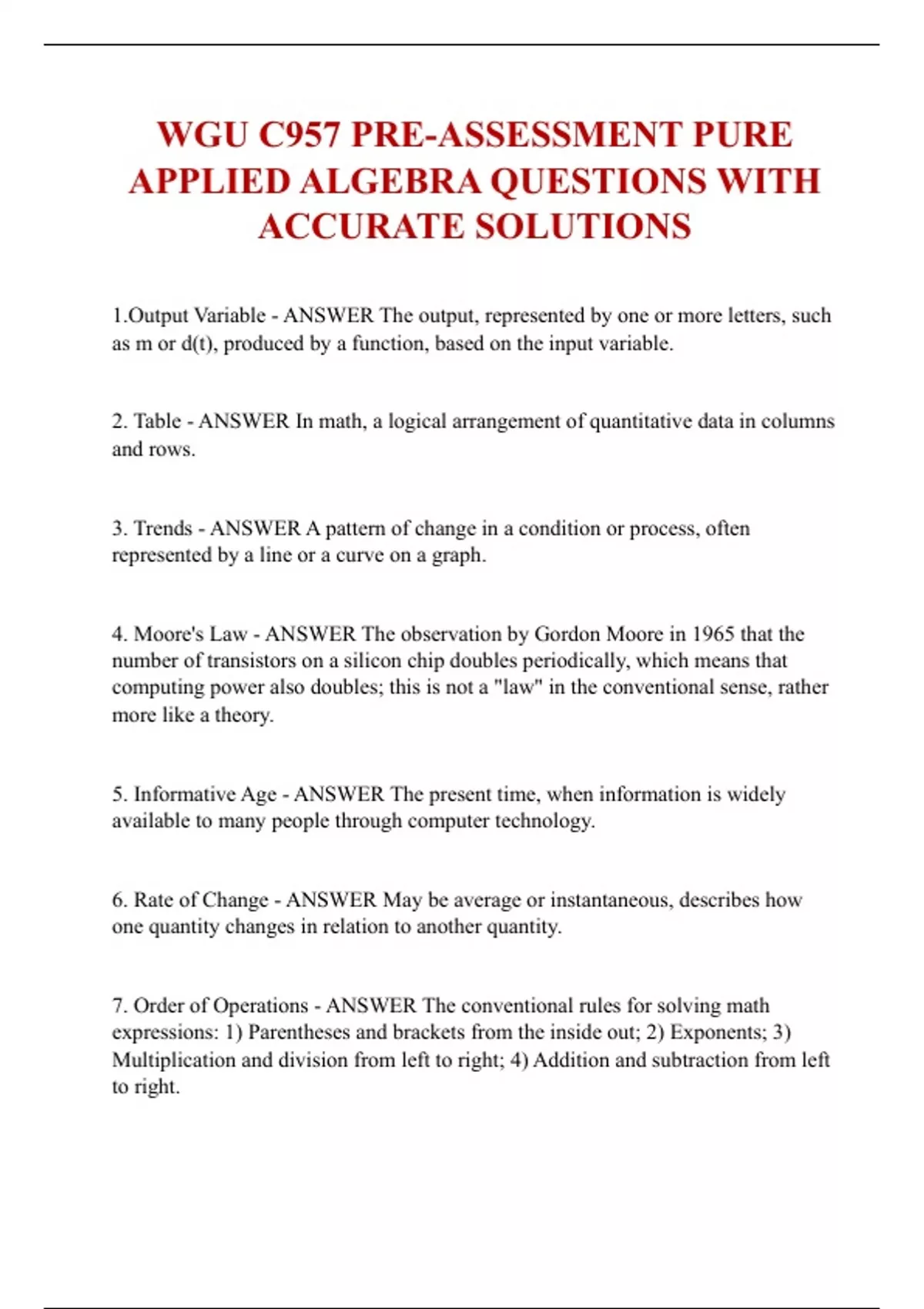 WGU C957 PRE-ASSESSMENT PURE APPLIED ALGEBRA QUESTIONS WITH ACCURATE SOLUTIONS