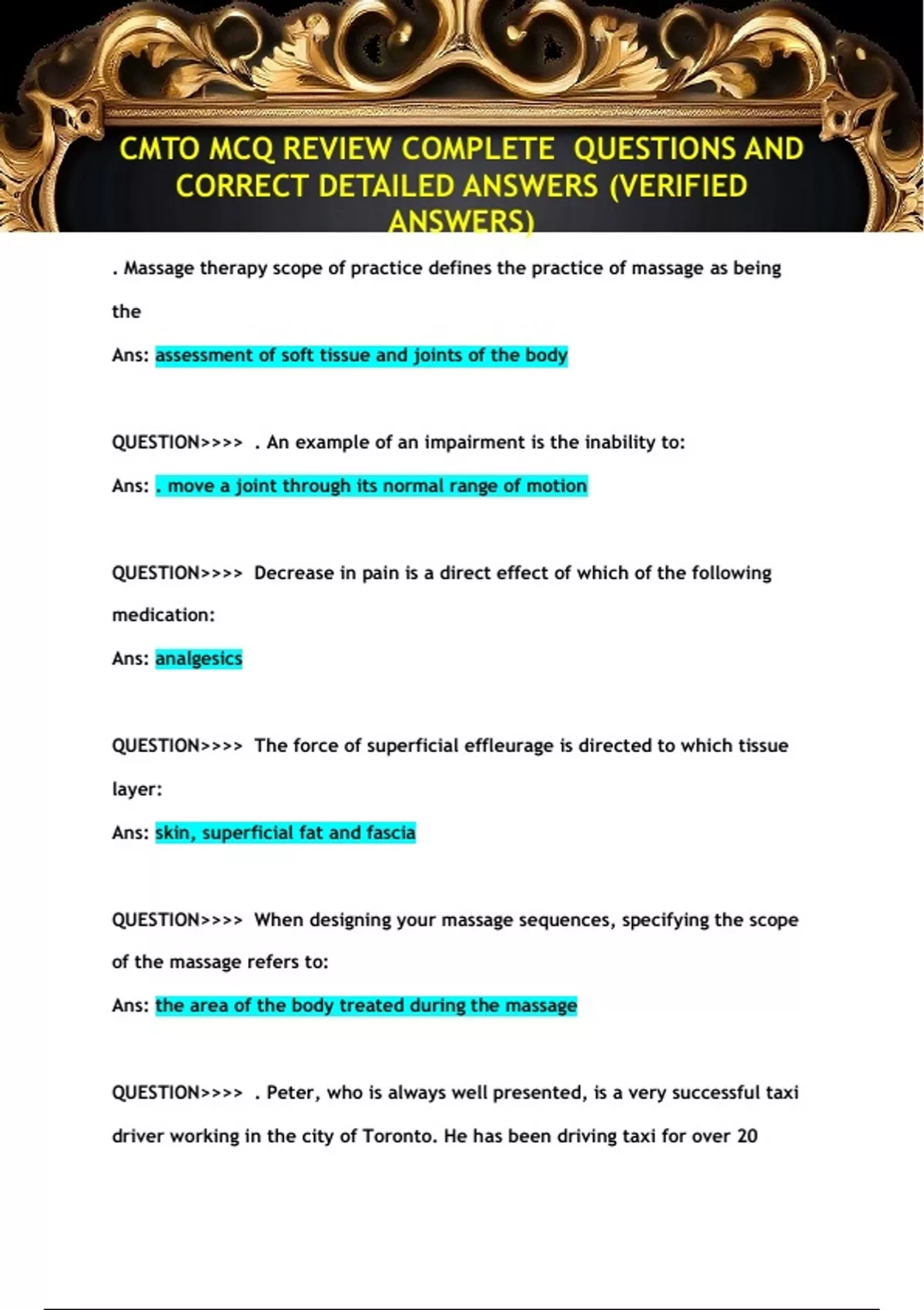 CORRECT DETAILED ANSWERS (VERIFIED