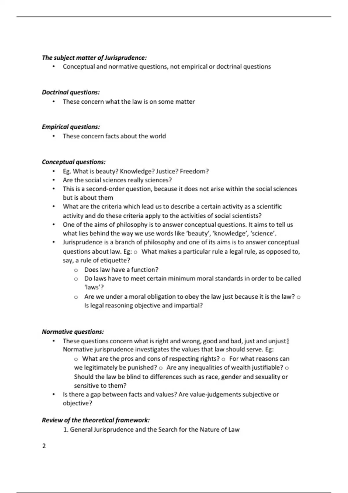 questions about law. Eg: o What makes a particular rule a legal rule, as opposed to,