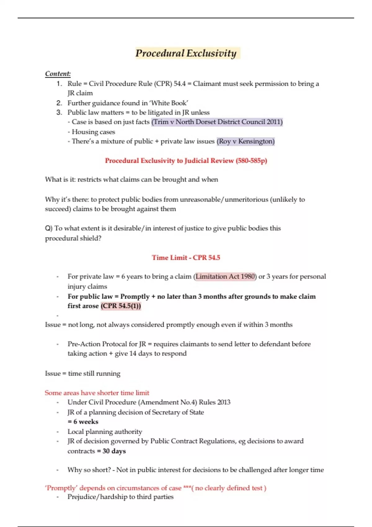 - Pre-Action Protocal for JR = requires claimants to send letter to defendant before