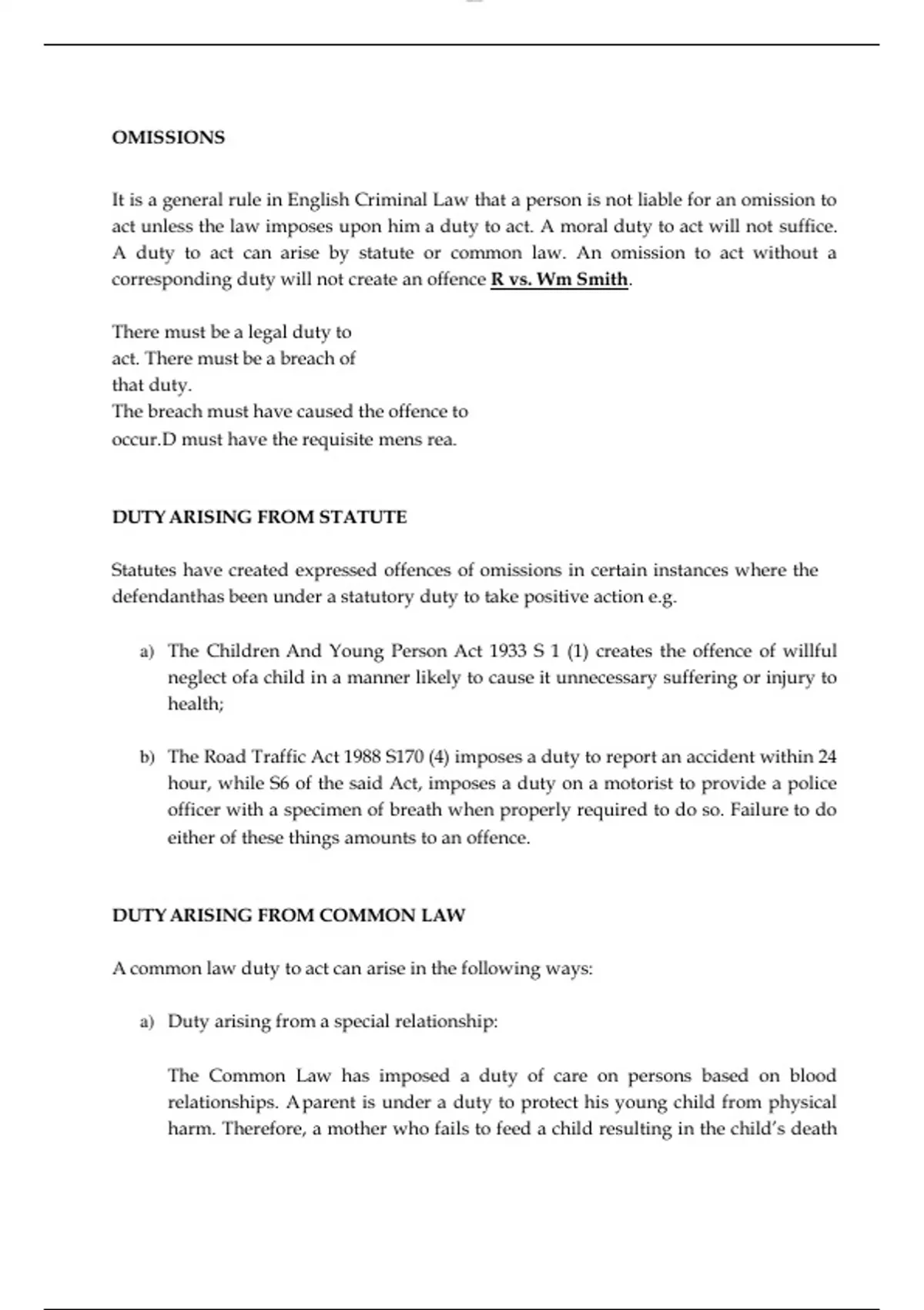 It is a general rule in English Criminal Law that a person is not liable for an omission to