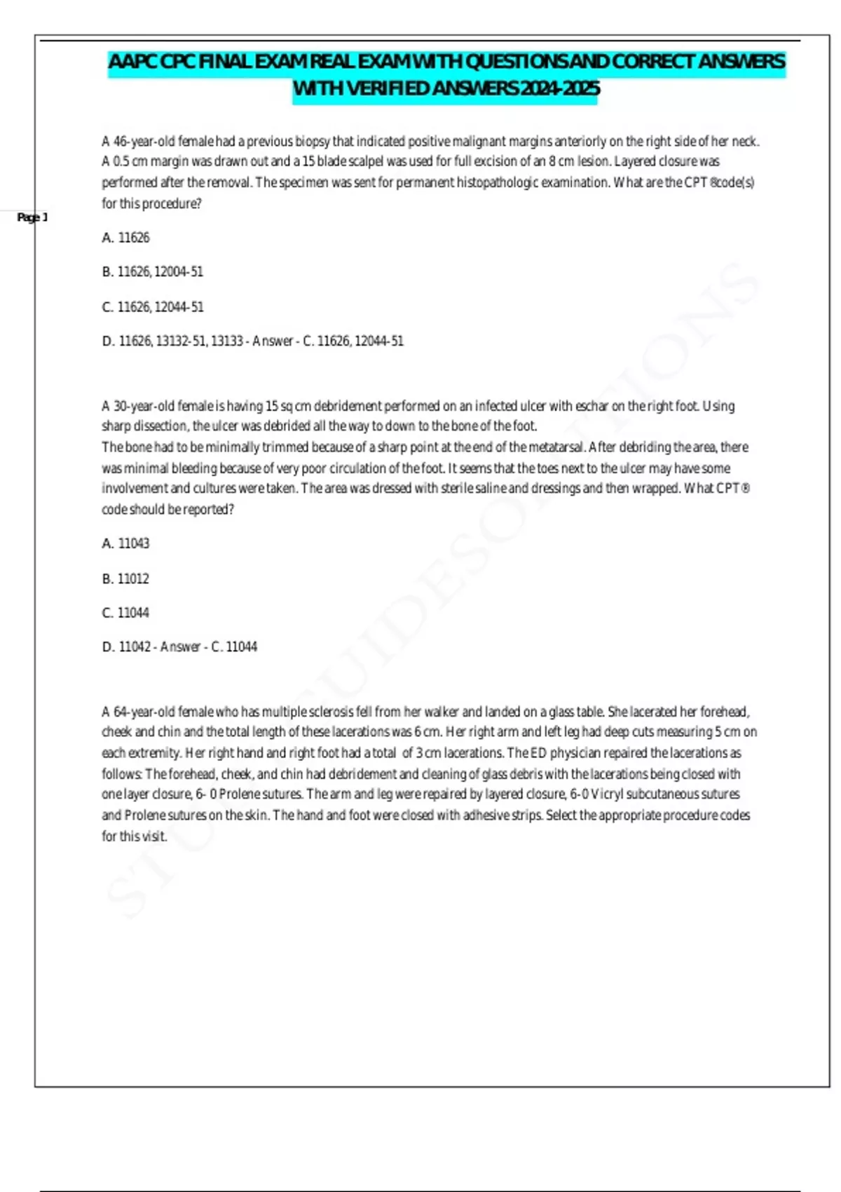 , AAPC CPC FINAL EXAM REAL EXAM WITH QUESTIONS AND CORRECT ANSWERS