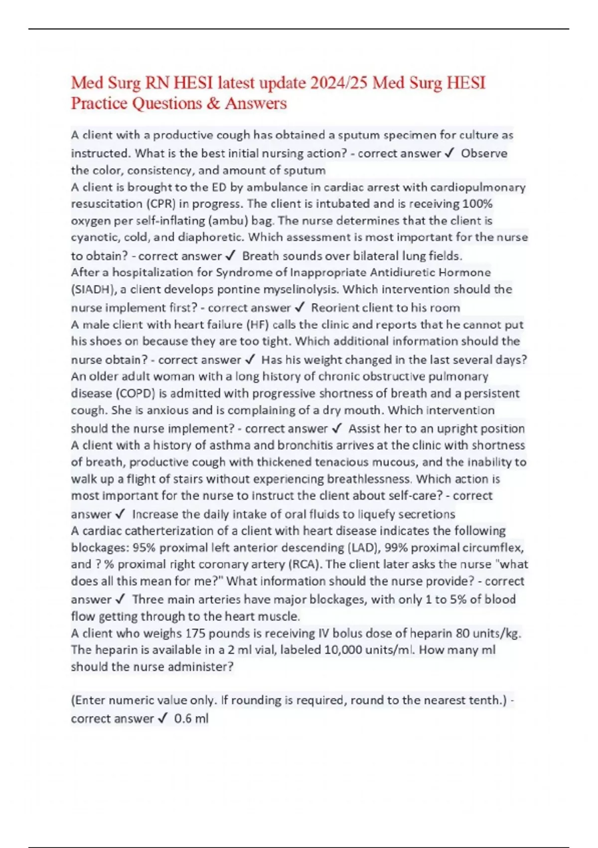 Med Surg RN HESI latest update 202425 Med Surg HESI