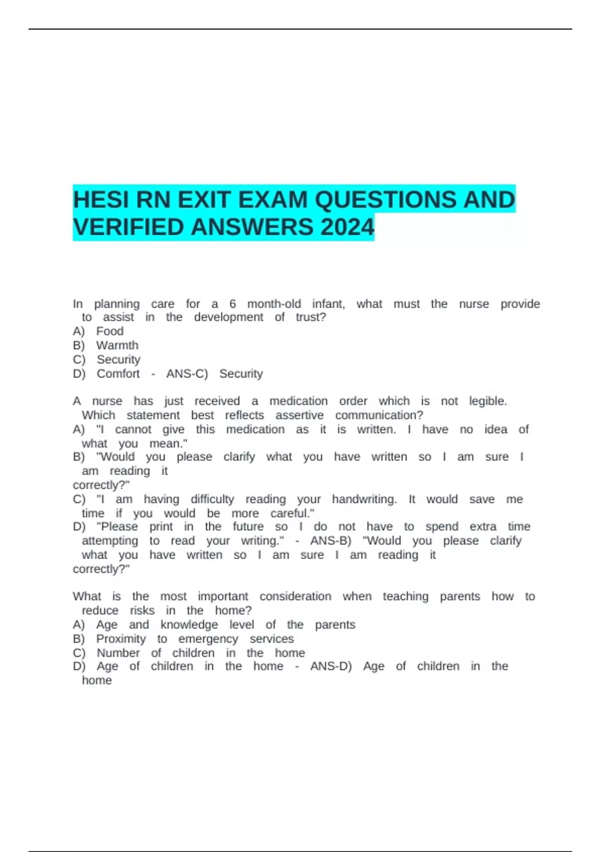 HESI RN EXIT EXAM QUESTIONS AND VERIFIED ANSWERS 2023.