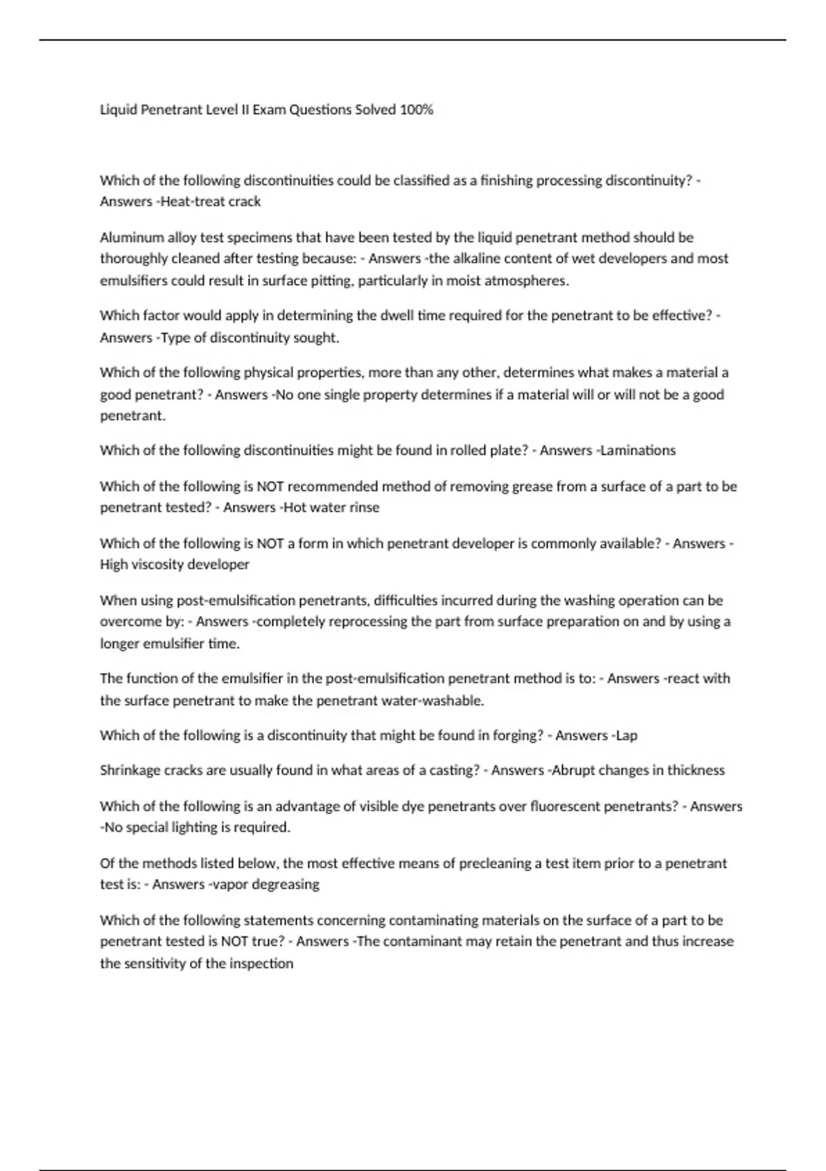 penetrant tested? - Answers -The discontinuities may be closed