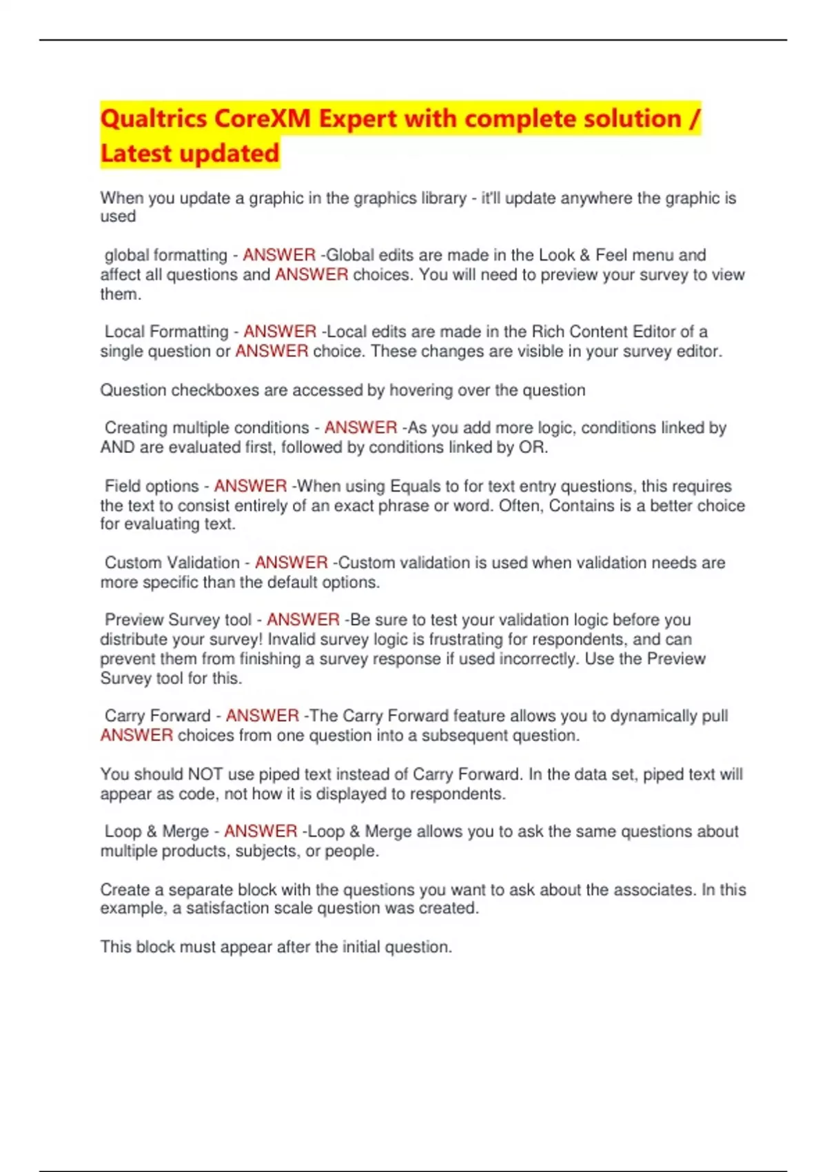 Loop & Merge - ANSWER -Loop & Merge allows you to ask the same questions about
