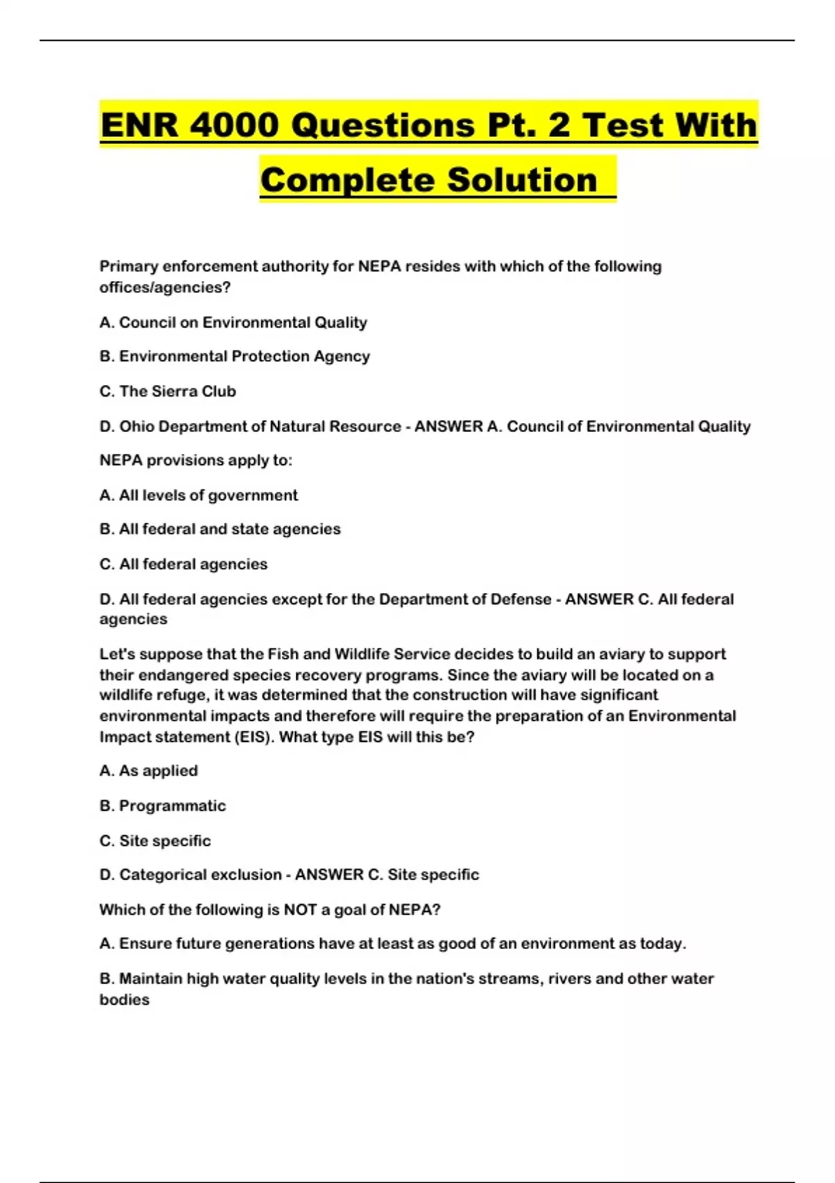 ENR 4000 Questions Pt. 2 Test With Complete Solution ...
