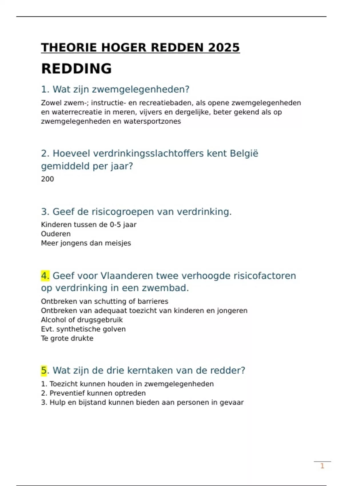 Samenvatting met antwoorden op de herhalingsvragen + extra uitleg. Theoretisch examen hoger (en basis) redder. Hoofdstuk redding / redden.