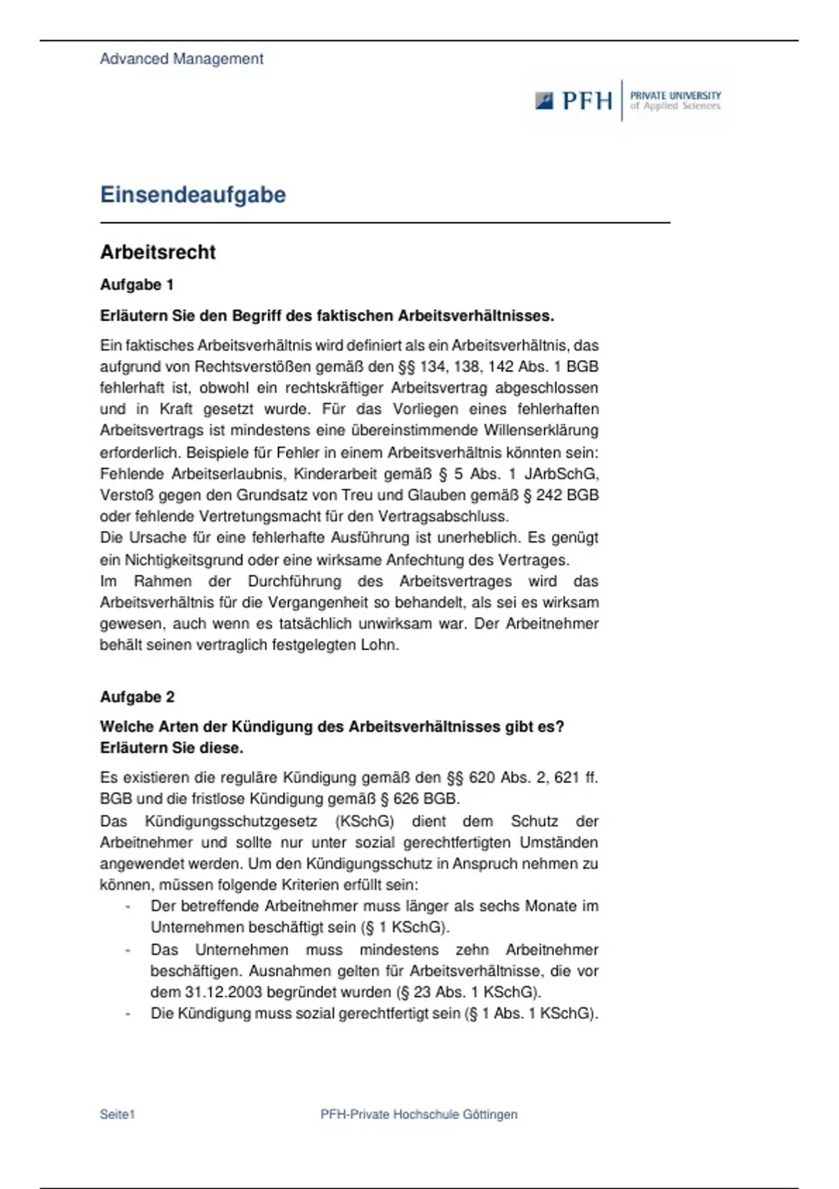 erforderlich. Beispiele für Fehler in einem Arbeitsverhältnis könnten sein: