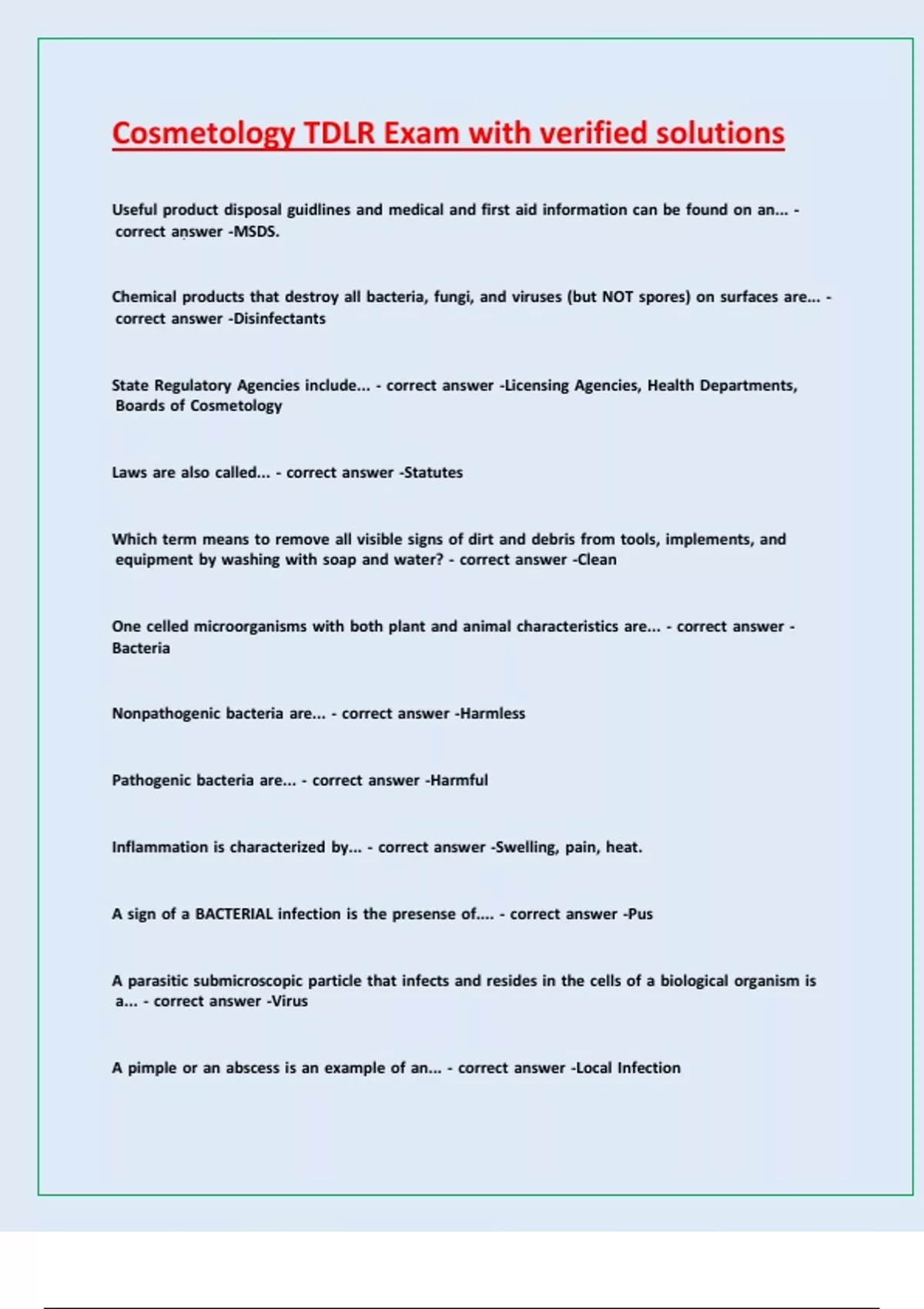 Cosmetology TDLR Exam with verified solutions