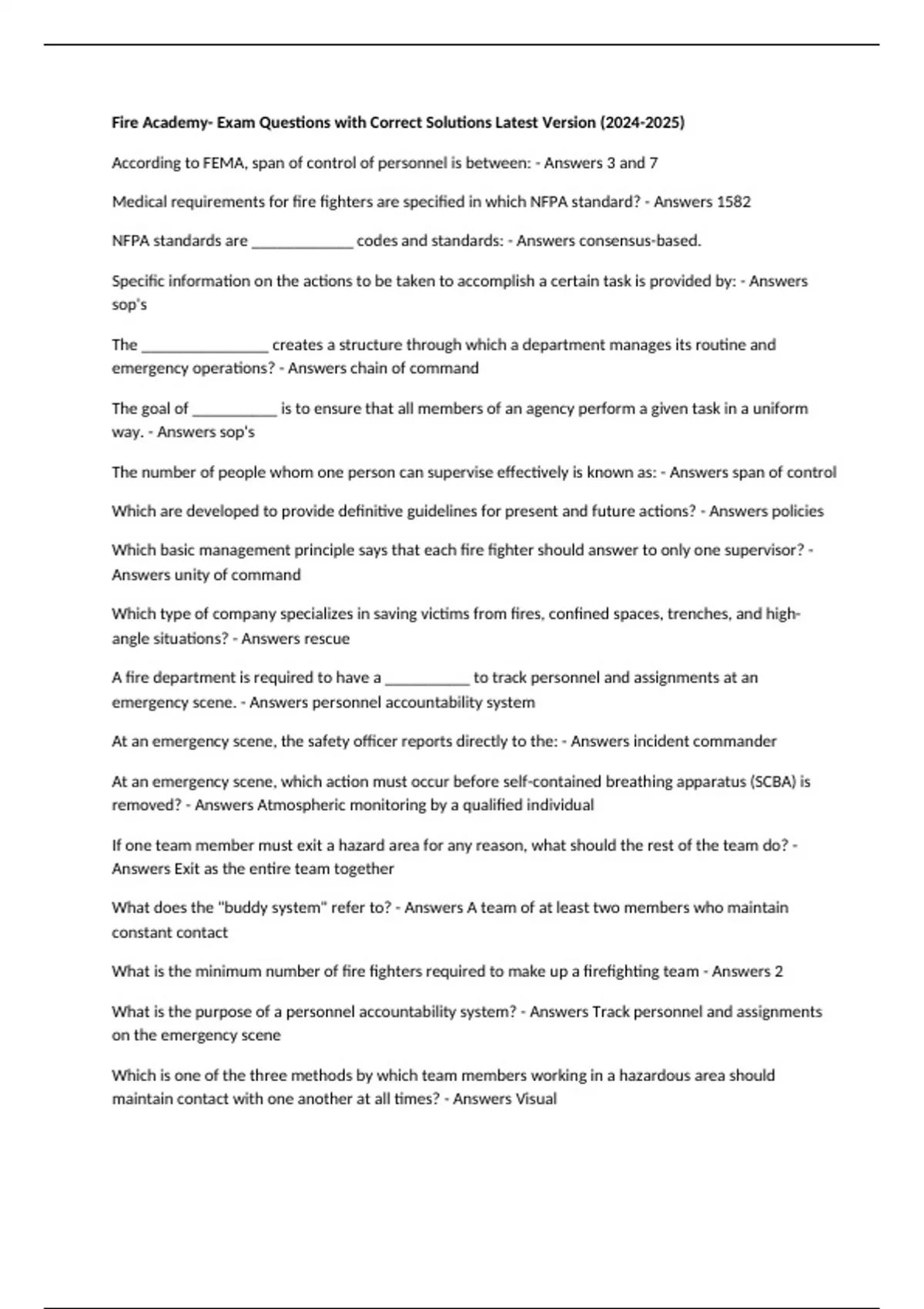 Medical requirements for fire fighters are specified in which NFPA standard? - Answers 1582
