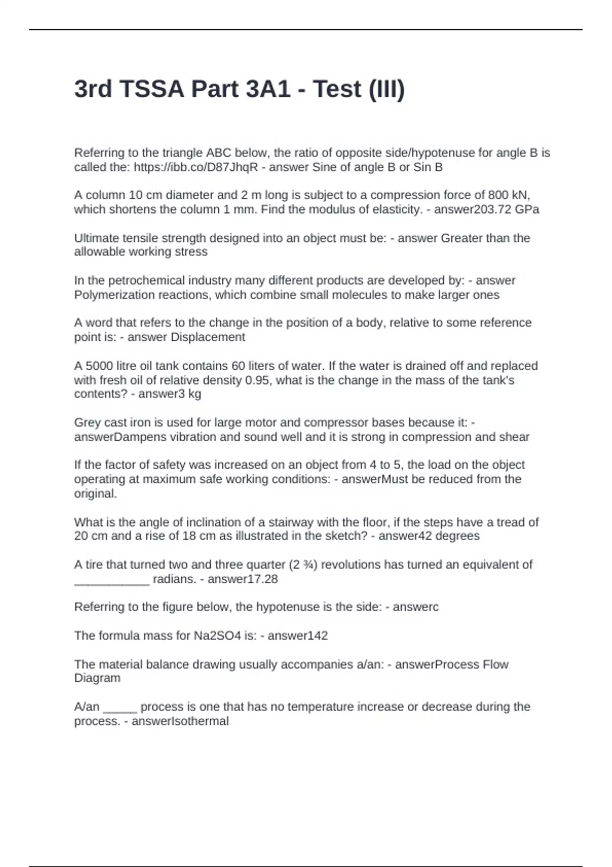 3rd TSSA Part 3A1 - Test (III) Questions with Solutions
