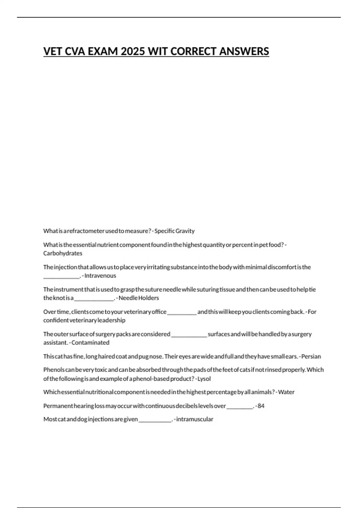 VET CVA EXAM 2025 WIT CORRECT ANSWERS