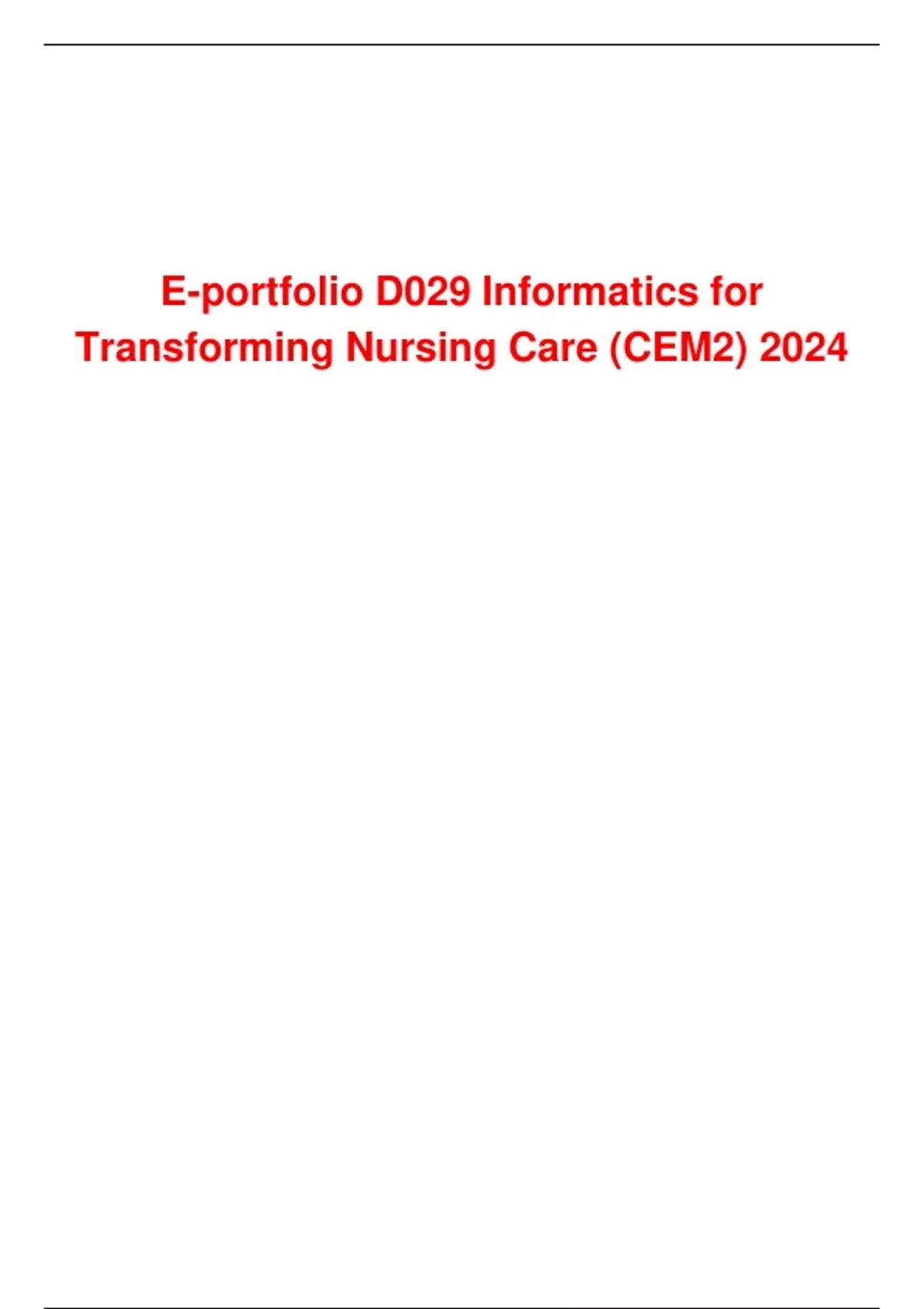 E-portfolio D029 Informatics for Transforming Nursing Care (CEM2) 2024.