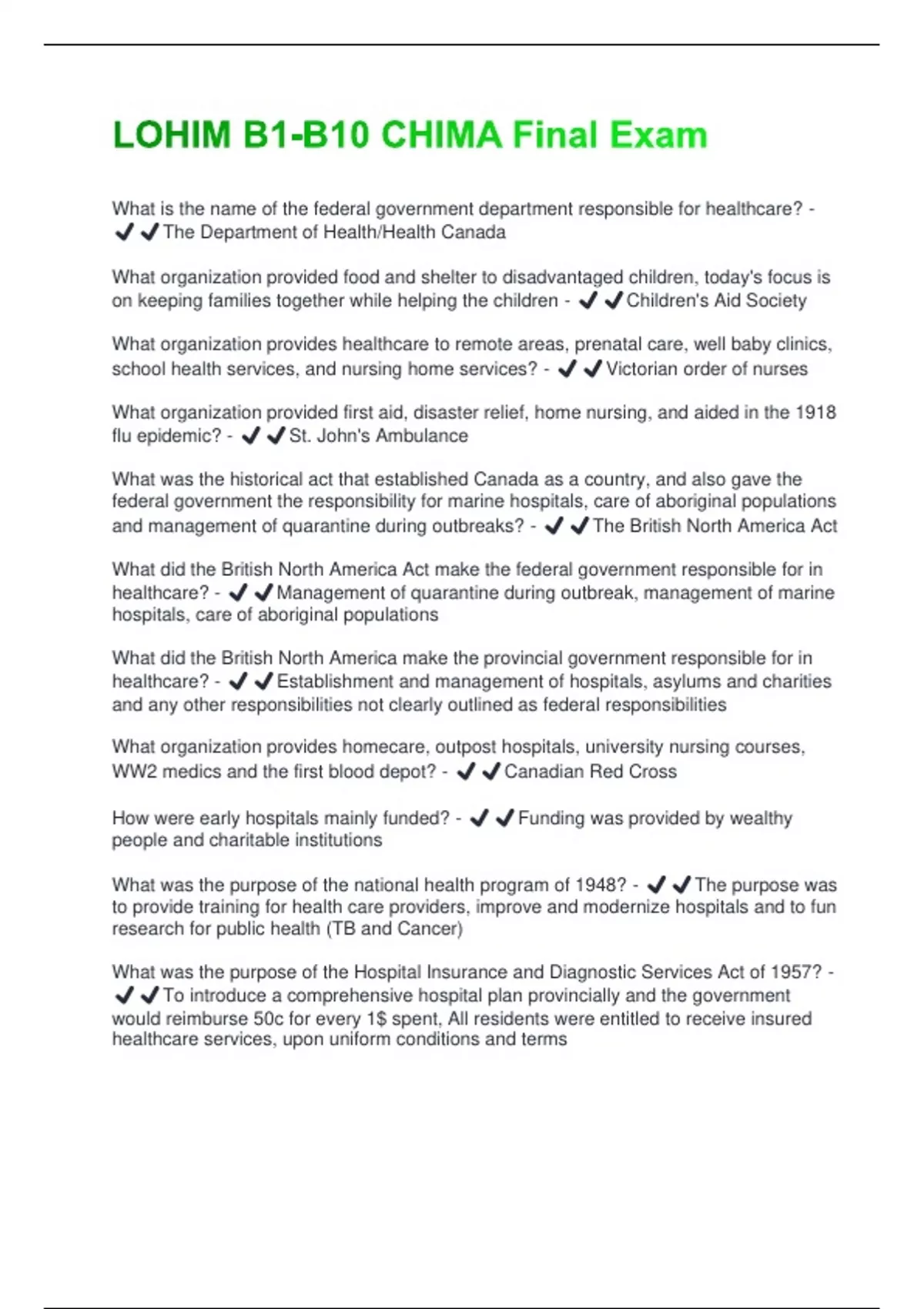LOHIM B1-B10 CHIMA Final Exam Questions And Answers Rated A+ New Update Assured Satisfaction