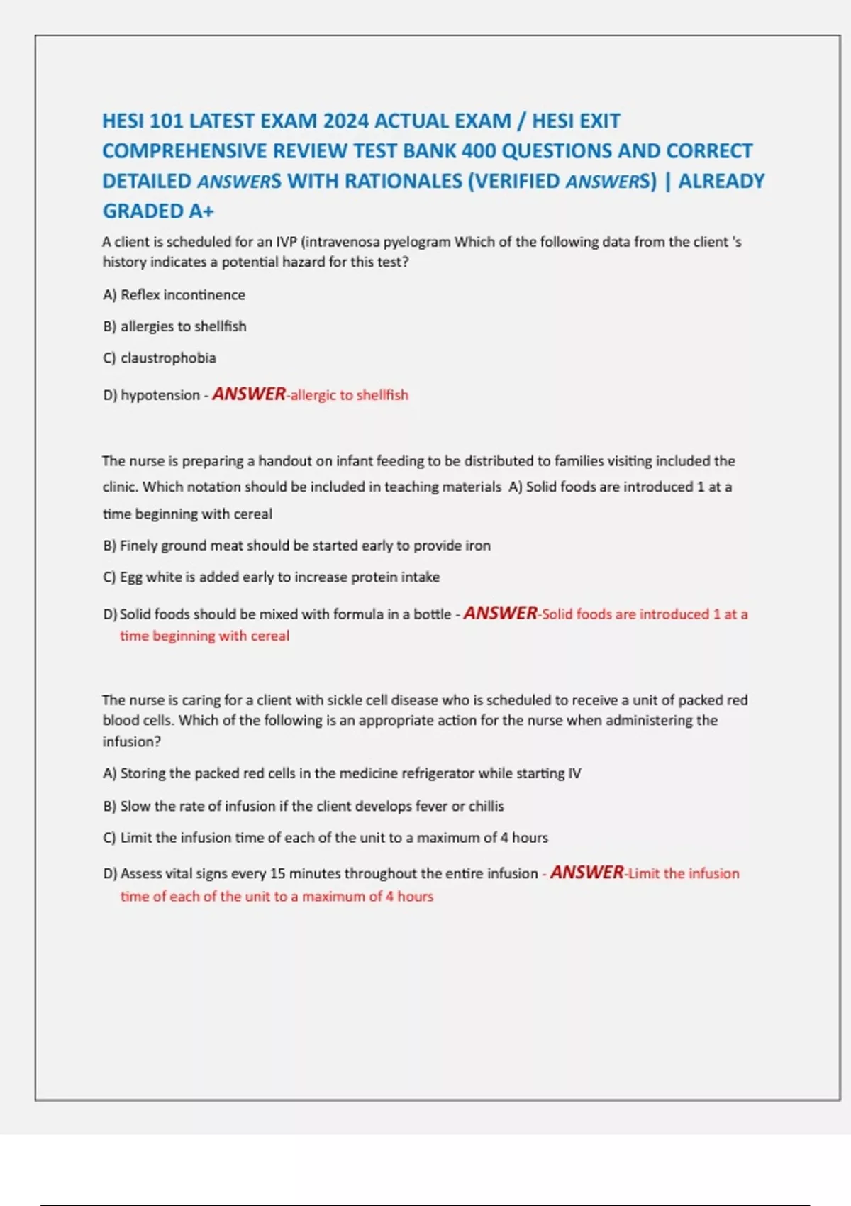 COMPREHENSIVE REVIEW TEST BANK 400 QUESTIONS AND CORRECT