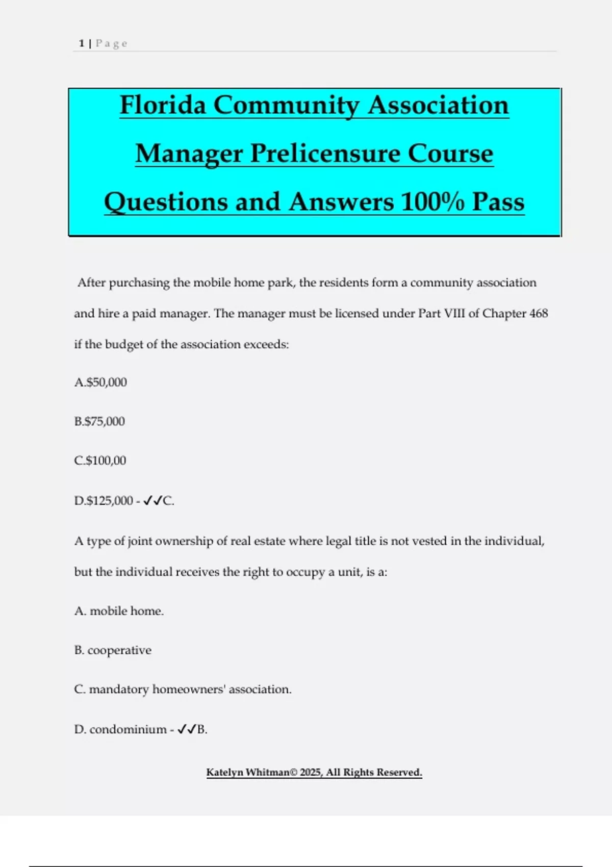 percentage of ownership in the common areas and any club membership rights. - ✔✔D.