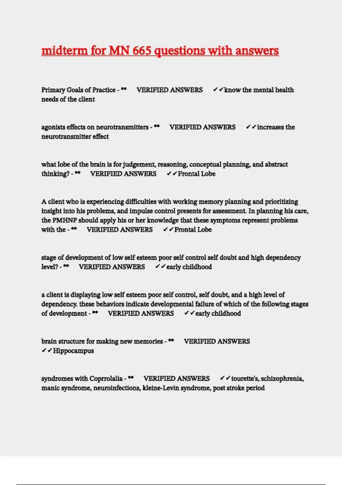 Primary Goals of Practice - **🔰 VERIFIED ANSWERS🔰 ✔✔know the mental health