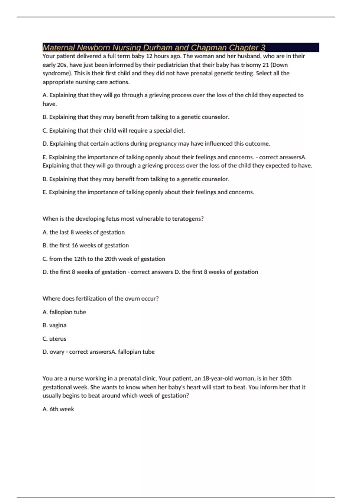 D. the first 8 weeks of gestation - correct answers D. the first 8 weeks of gestation