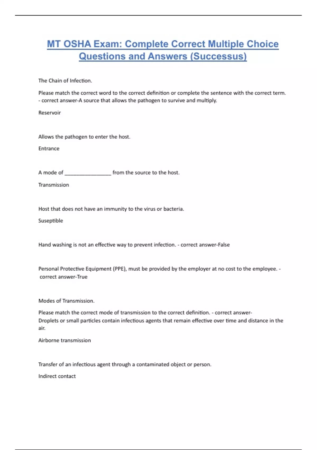 MT OSHA Exam: Complete Correct Multiple Choice