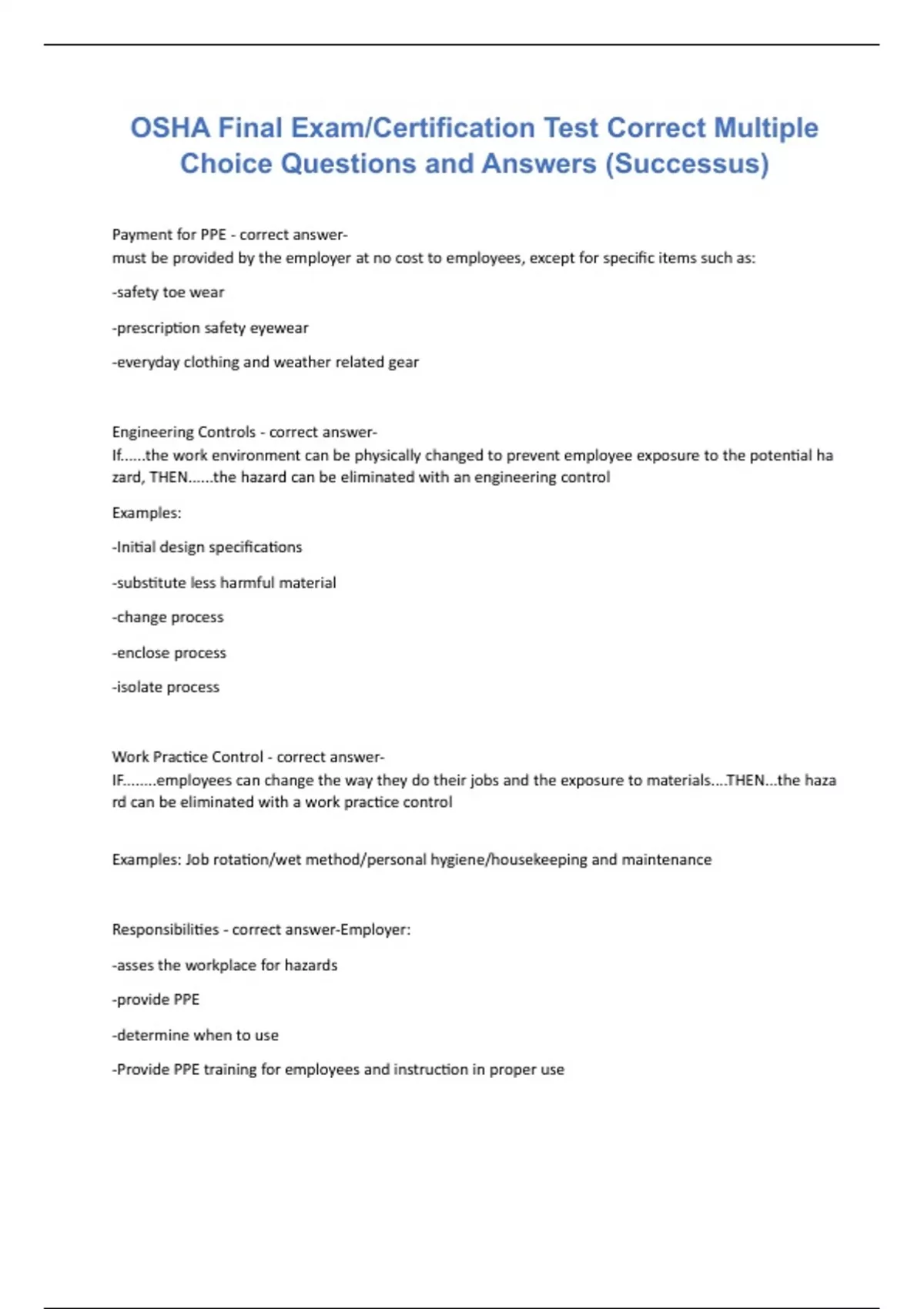 OSHA Final Exam/Certification Test Correct Multiple