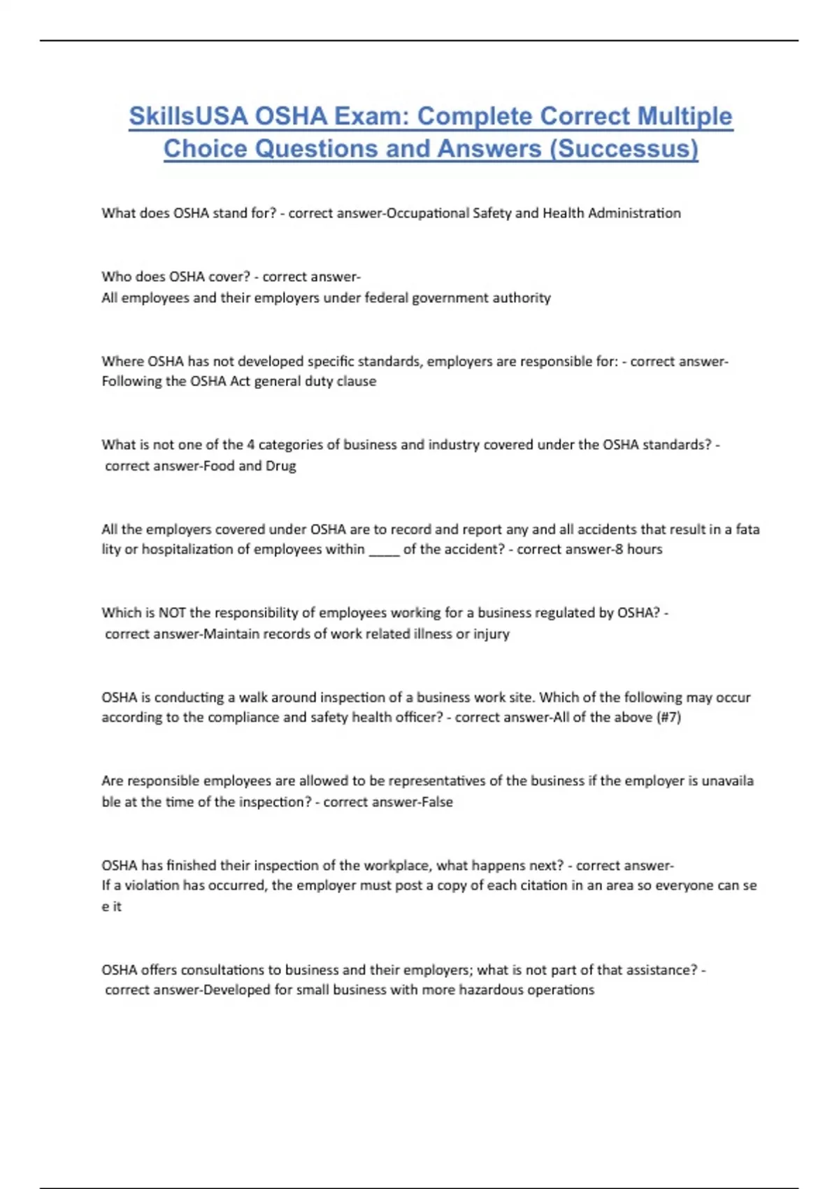 SkillsUSA OSHA Exam: Complete Correct Multiple