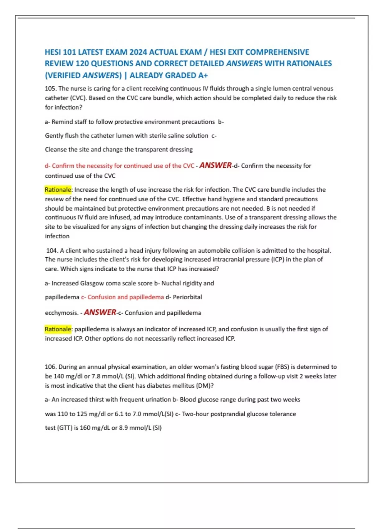 REVIEW 120 QUESTIONS AND CORRECT DETAILED ANSWERS WITH RATIONALES