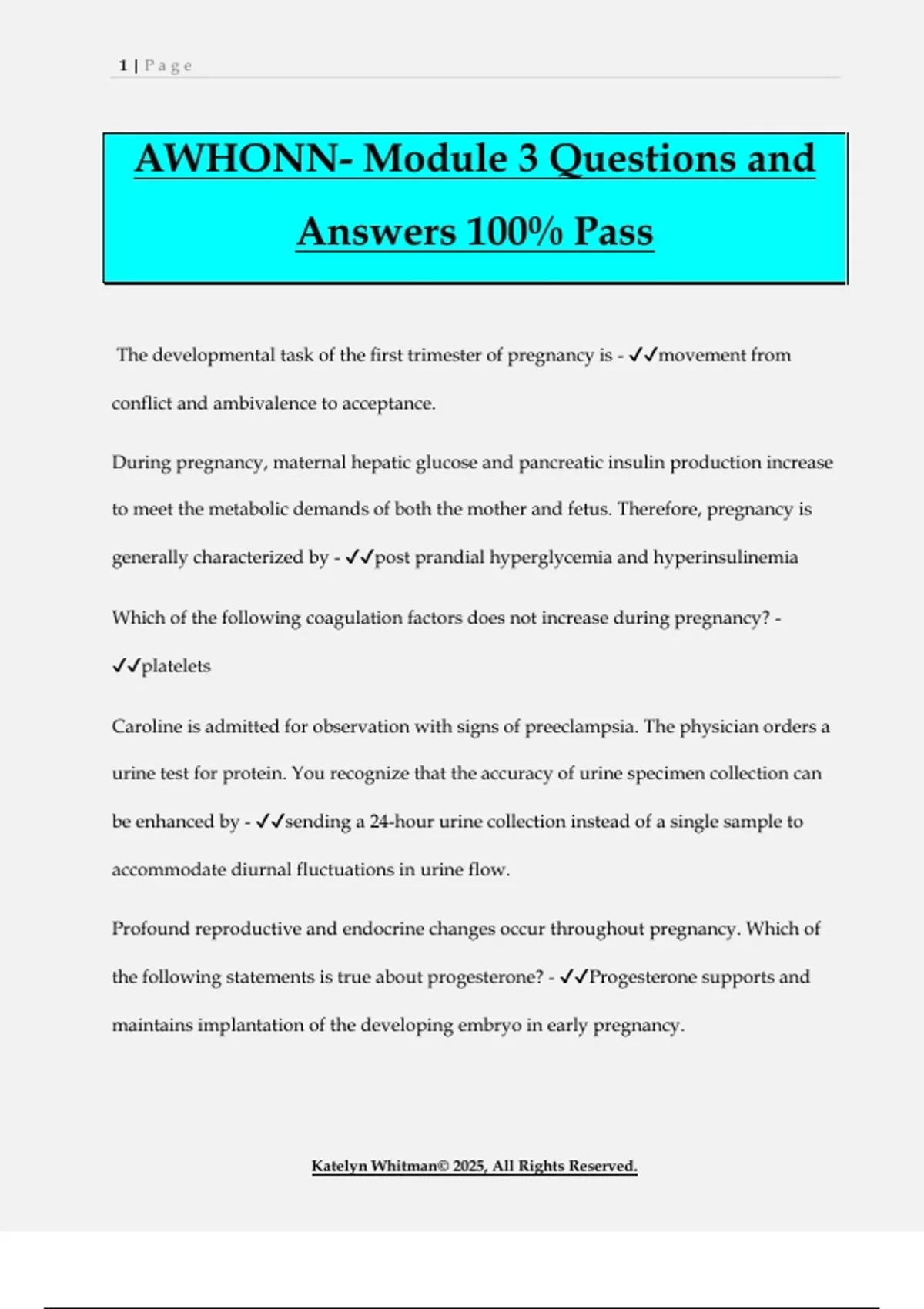 AWHONN- Module 3 Questions and Answers 100% Pass