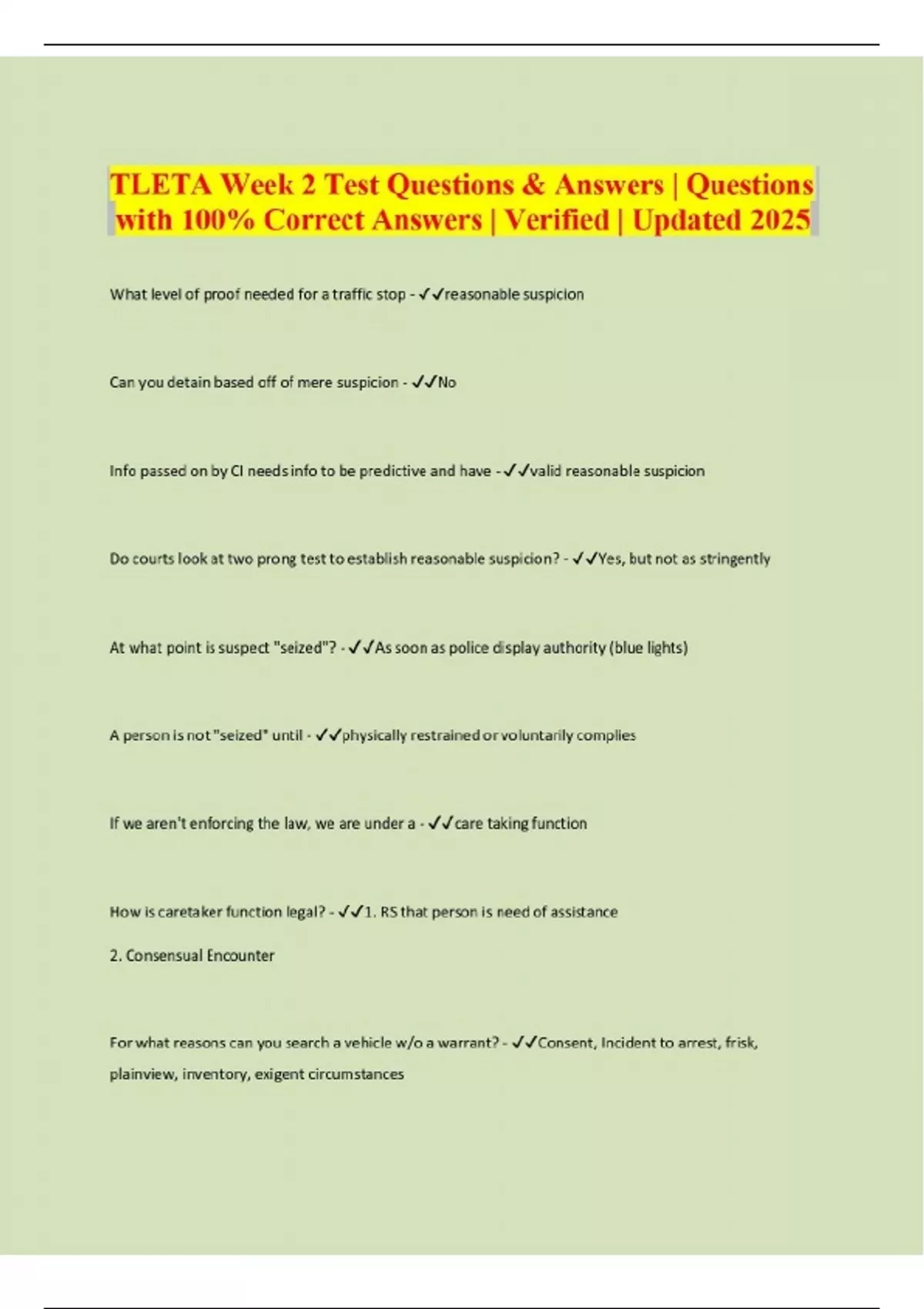 TLETA Week 2 Test Questions & Answers | Questions with 100% Correct Answers | Verified | Updated 2025