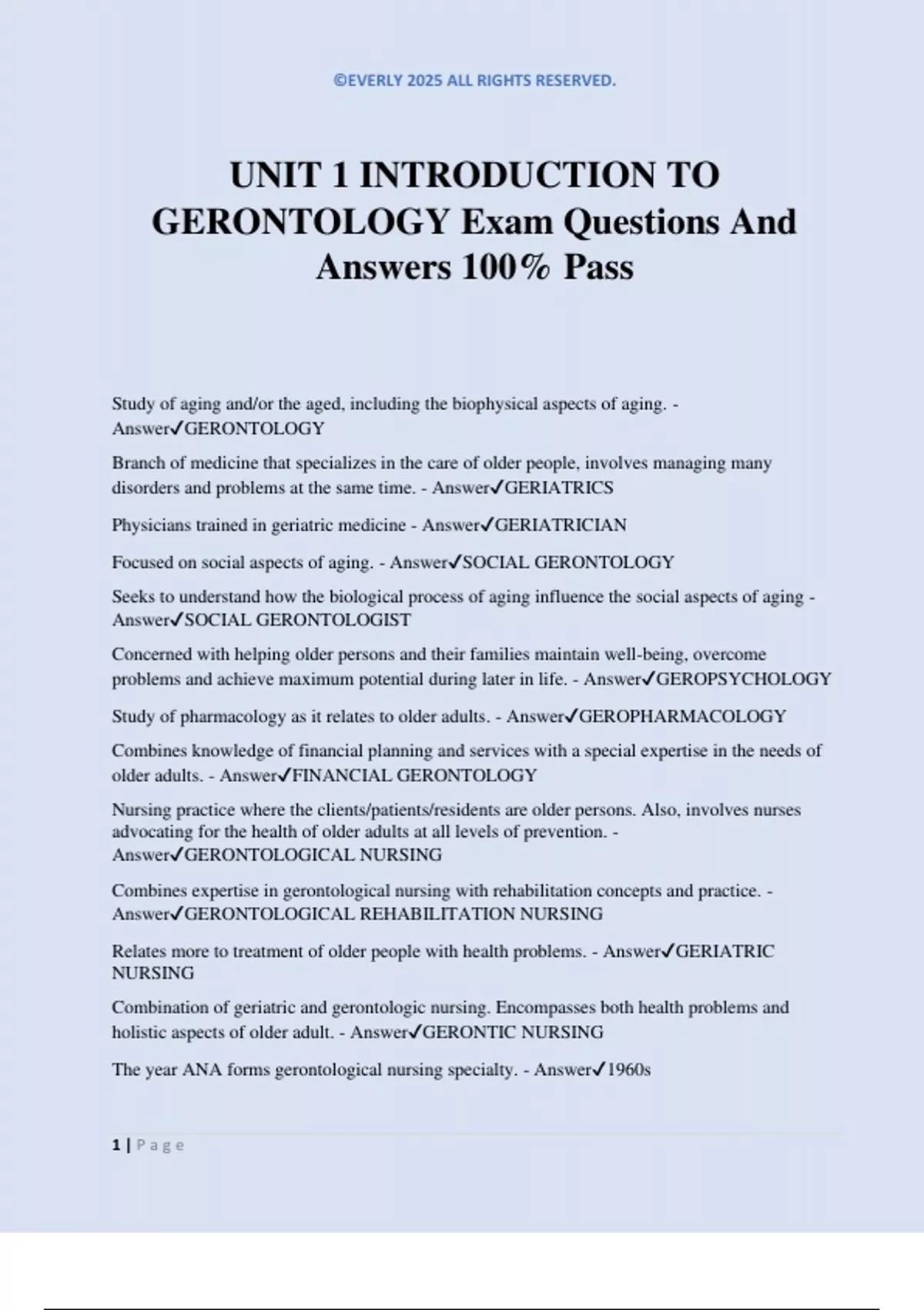GERONTOLOGY Exam Questions And