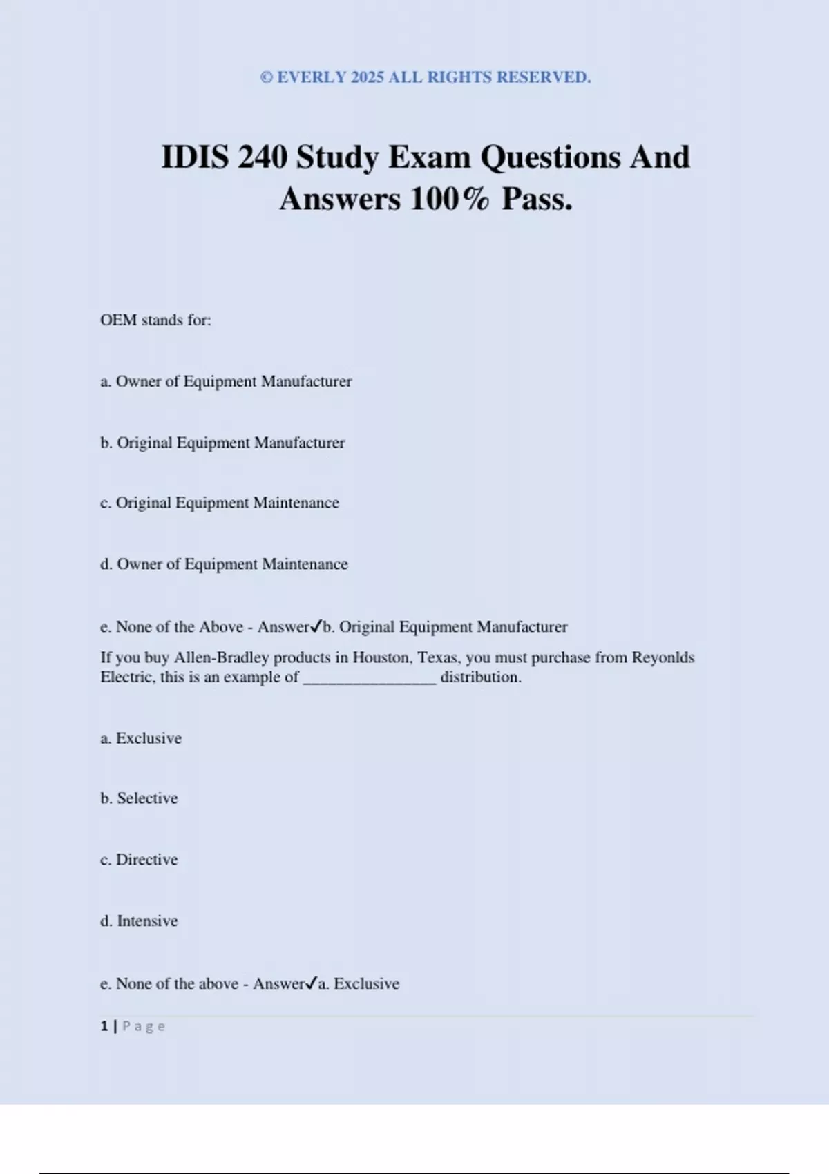 e. None of the Above - Answer✔b. Original Equipment Manufacturer