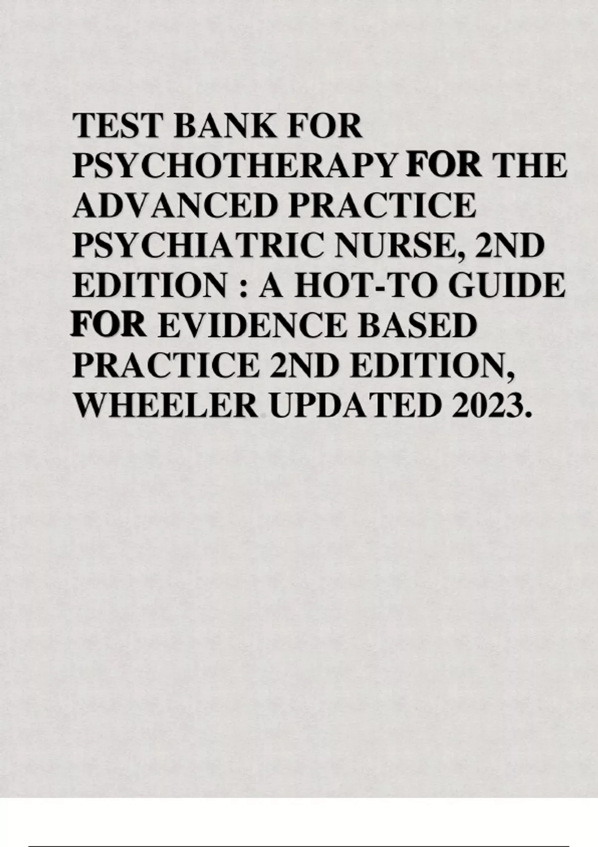 Test Bank for Psychotherapy for the Advanced Practice Psychiatric Nurse: A How-To Guide for Evidence-Based Practice, 2nd Edition, by Kathleen Wheeler, All Chapters 1-24 LATEST